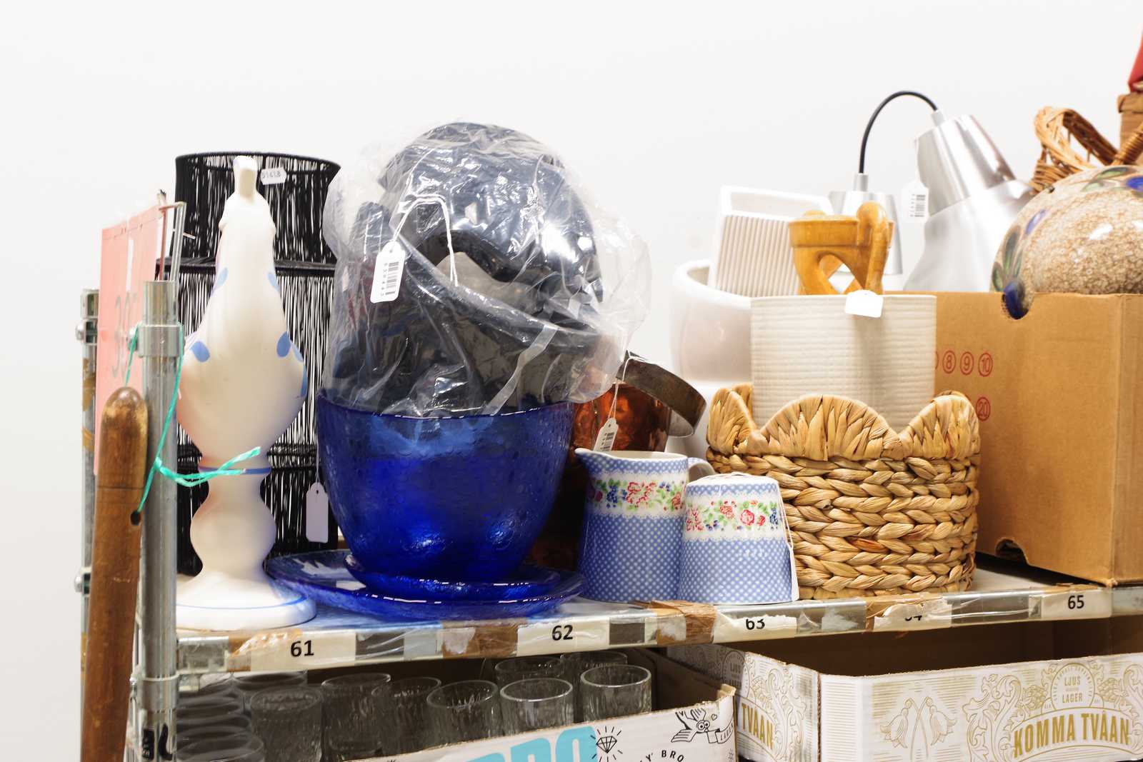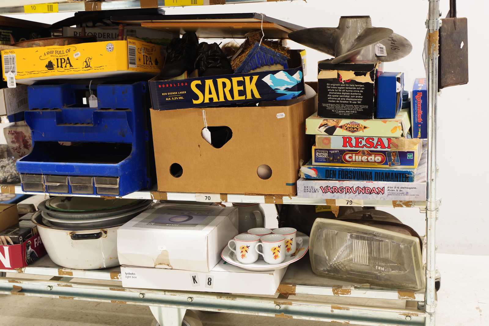 Parti OSÅLT GODS från tidigare auktioner. Säljes till förmån för barncancerfonden. Obs! Köparen måste ta hela partiet. (skador kan förekomma, vagnen ingår ej)