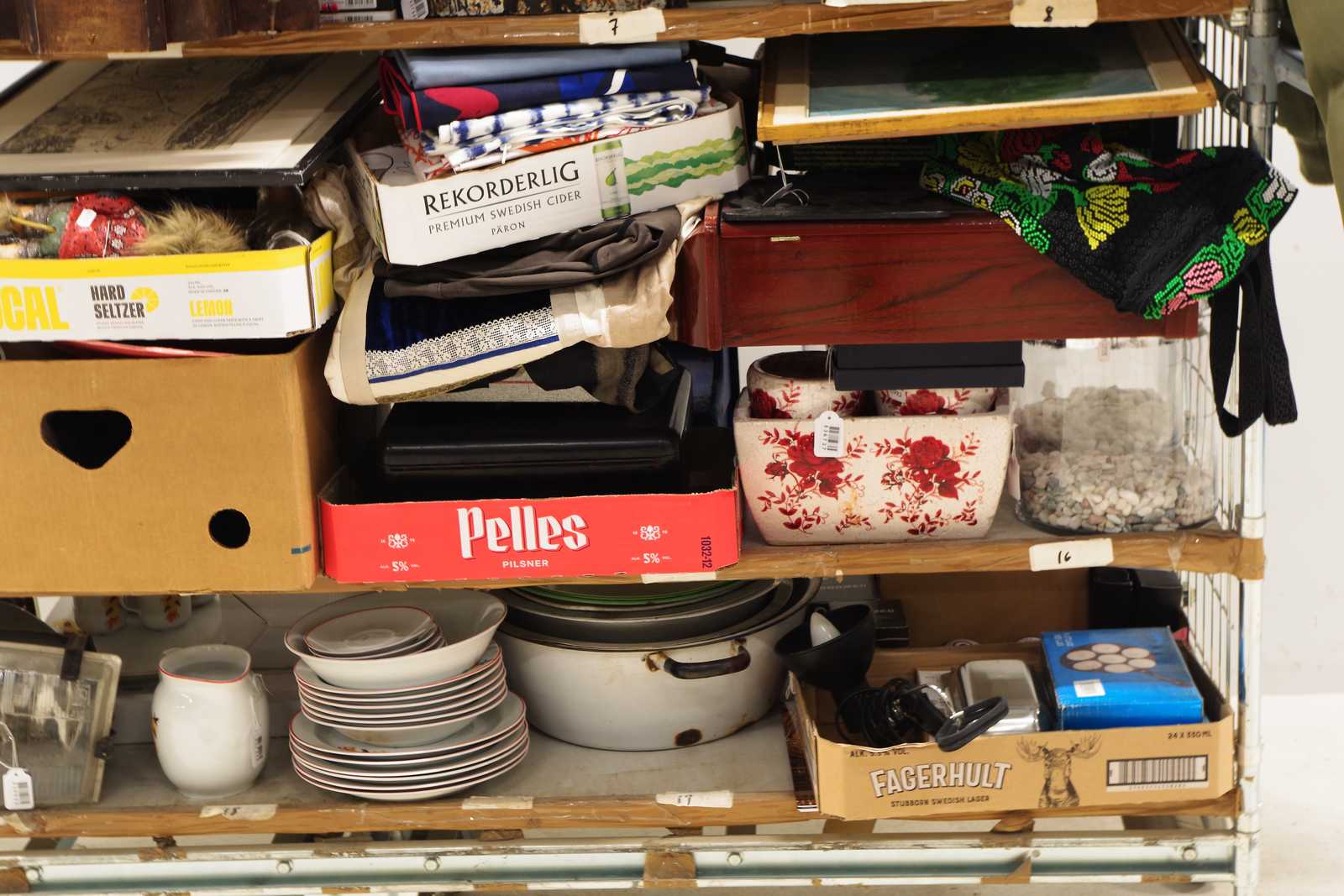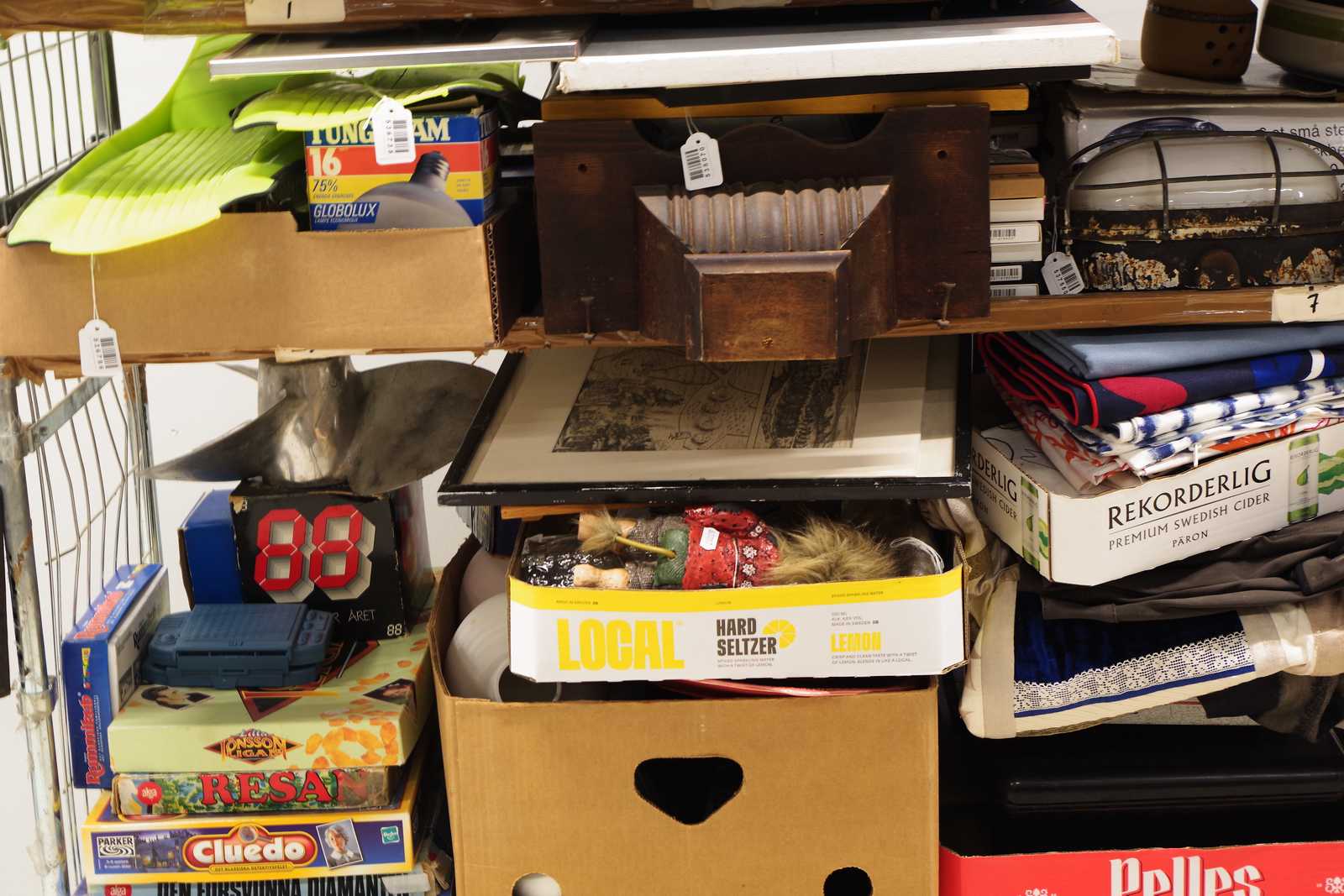 Bilder Parti OSÅLT GODS från tidigare auktioner. Säljes till förmån för barncancerfonden. Obs! Köparen måste ta hela partiet. (skador kan förekomma, vagnen ingår ej)