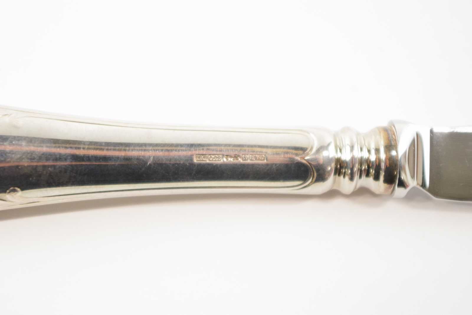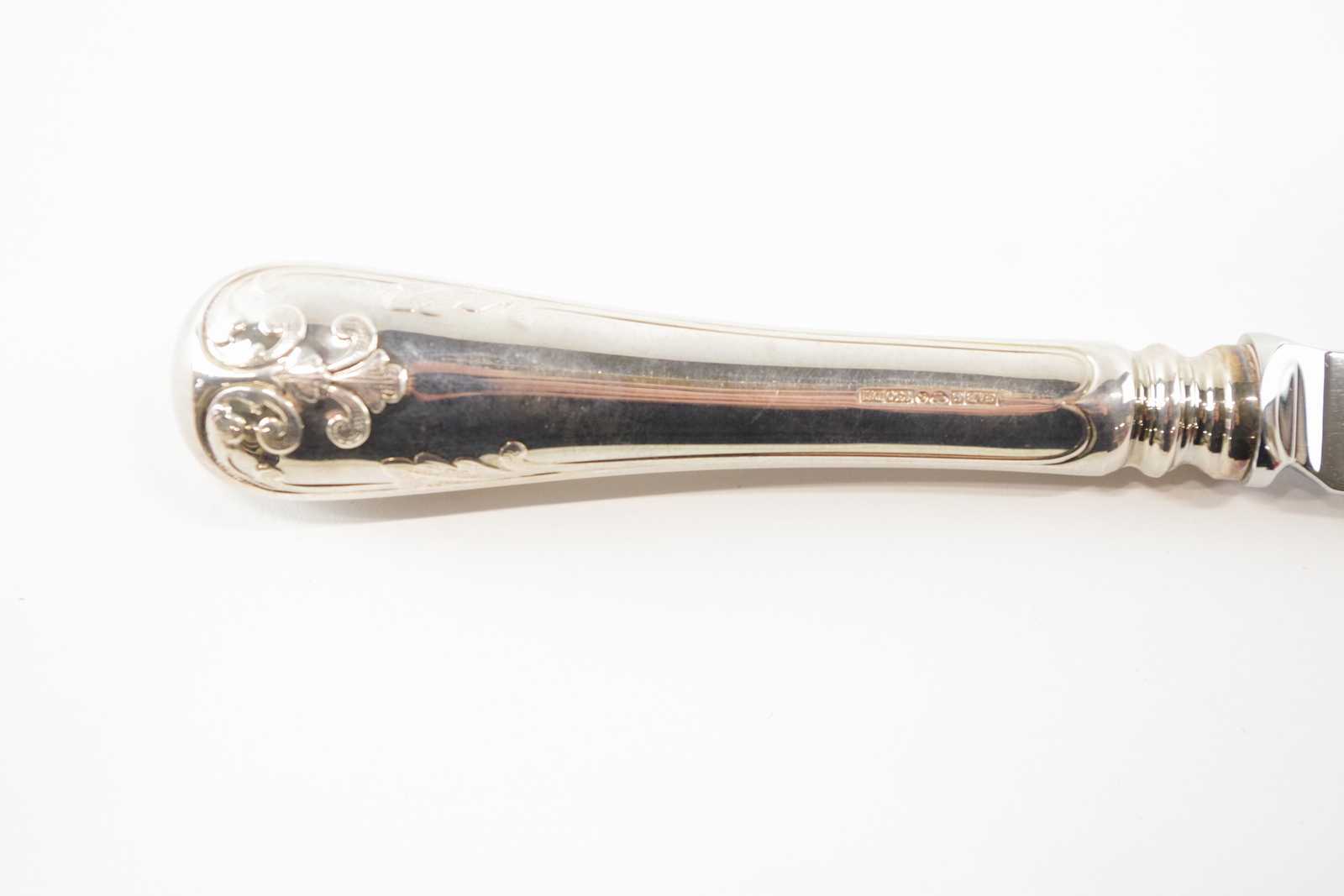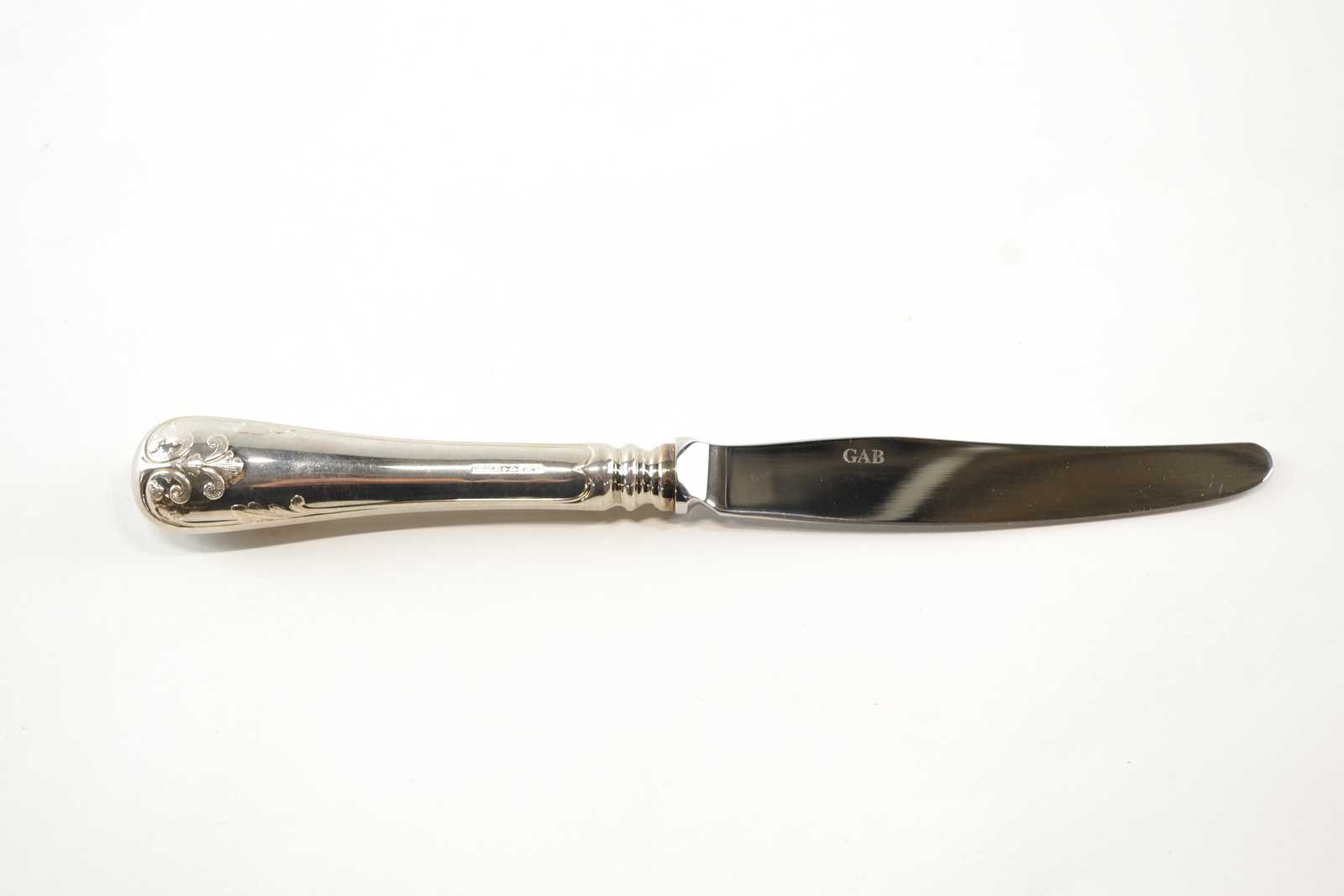 Auktioner Guld, Silver & Smycken KNIVAR & GAFFEL silver, gaffel "Uppsala" L:16,5 cm Total V:182,25 g (knivar rostfritt blad) Nytt OBS! 25% moms tillkommer på klubbat pris.