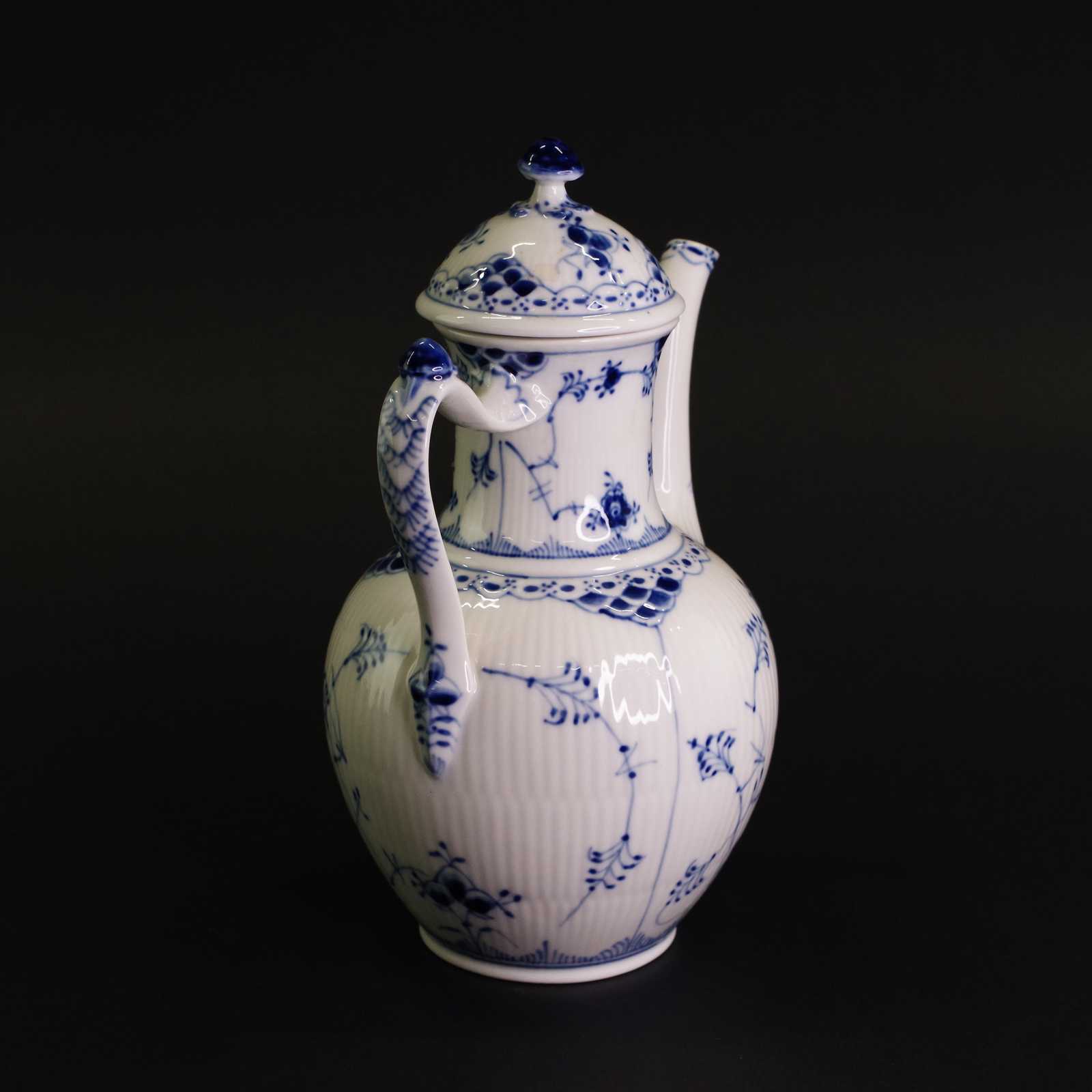 Bilder KAFFEKANNA Royal Copenhagen "Musselmalet" halvblond modell 519 Första sortering H:24 cm