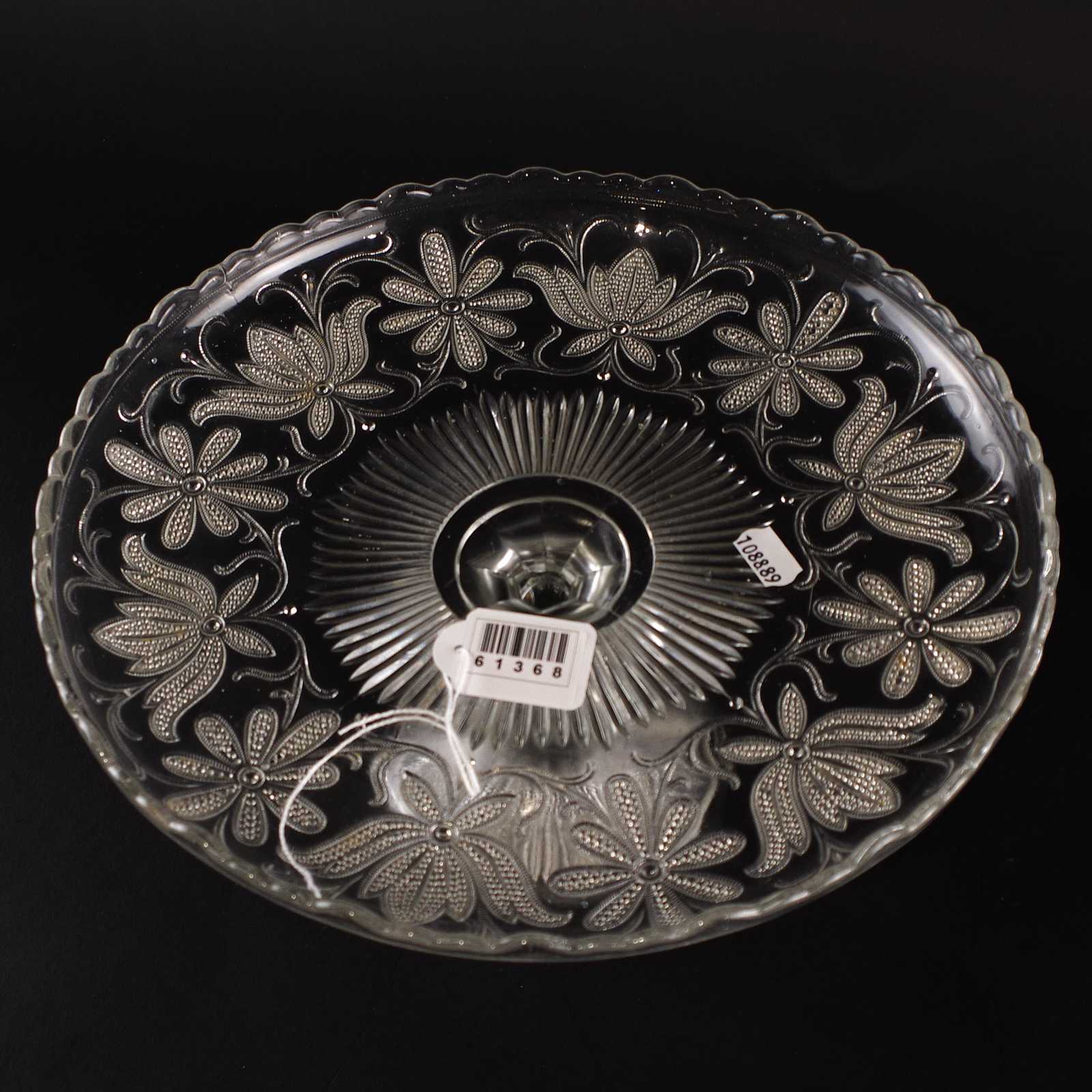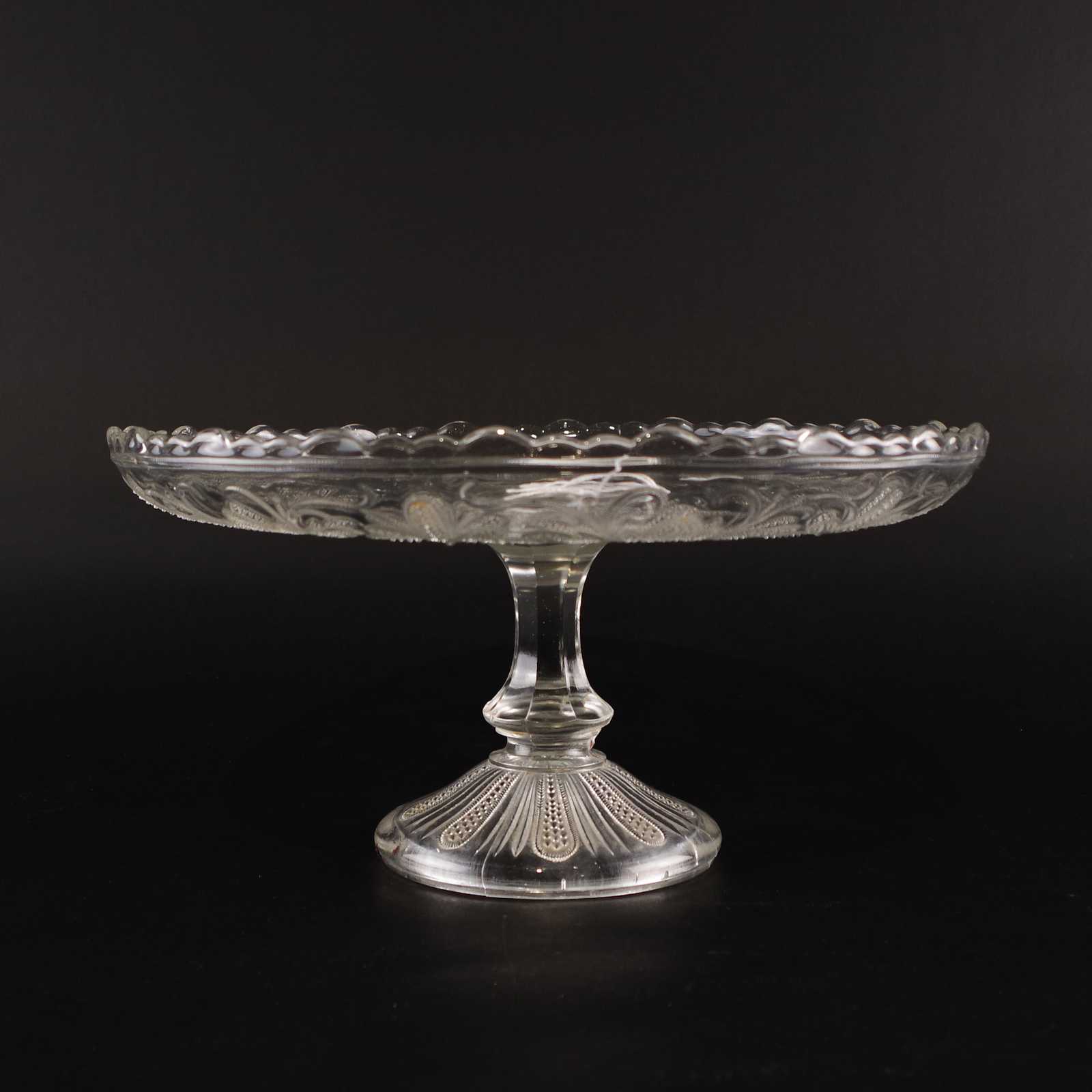 TÅRTFAT på fot, äldre, pressglas. D:28cm.