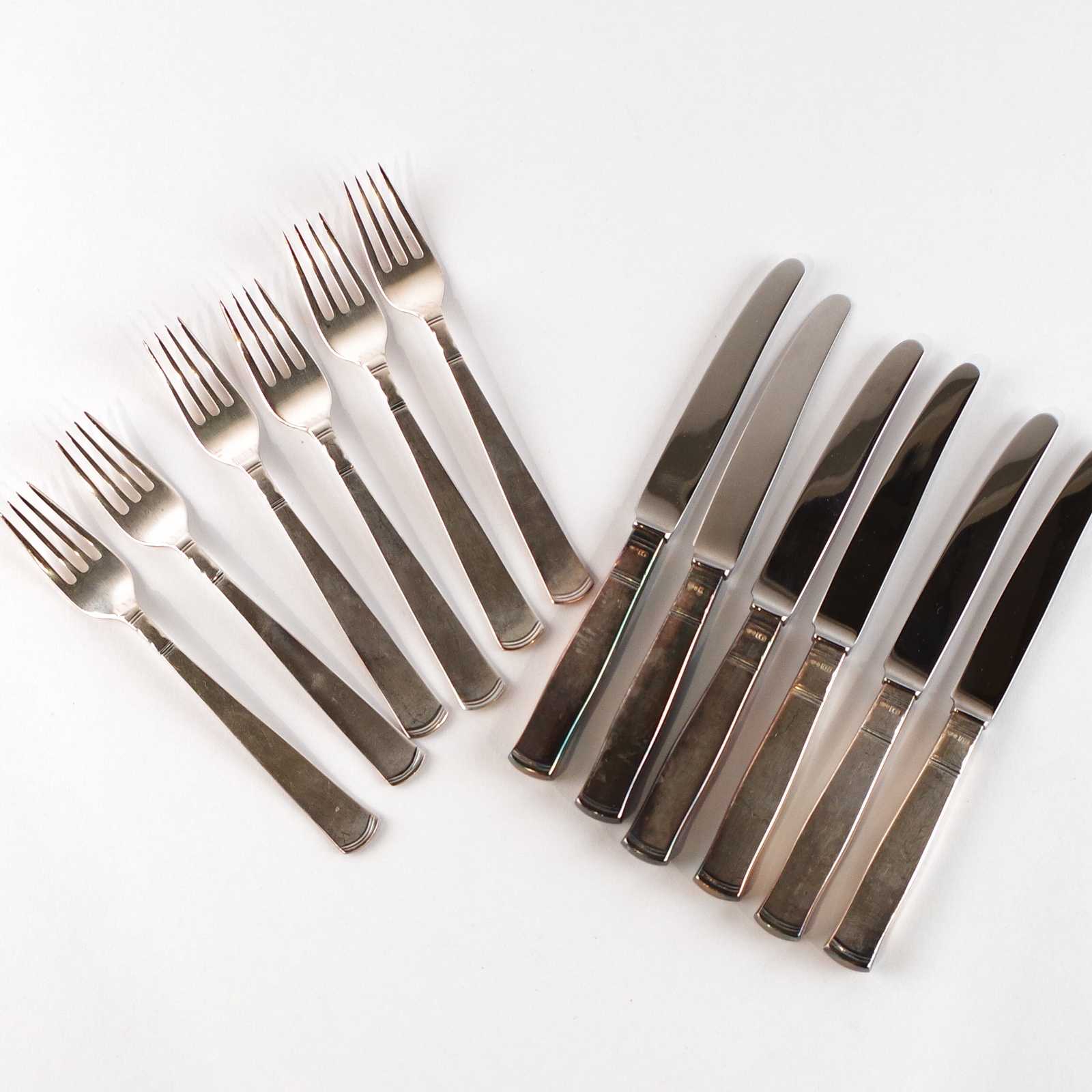 BESTICKUPPSÄTTNING smörgåsbestick, silver. Rosenholm. 380 gram totalt, knivar är silver/rostfritt. L:13,8cm gafflar, L:16,6cm knivar.