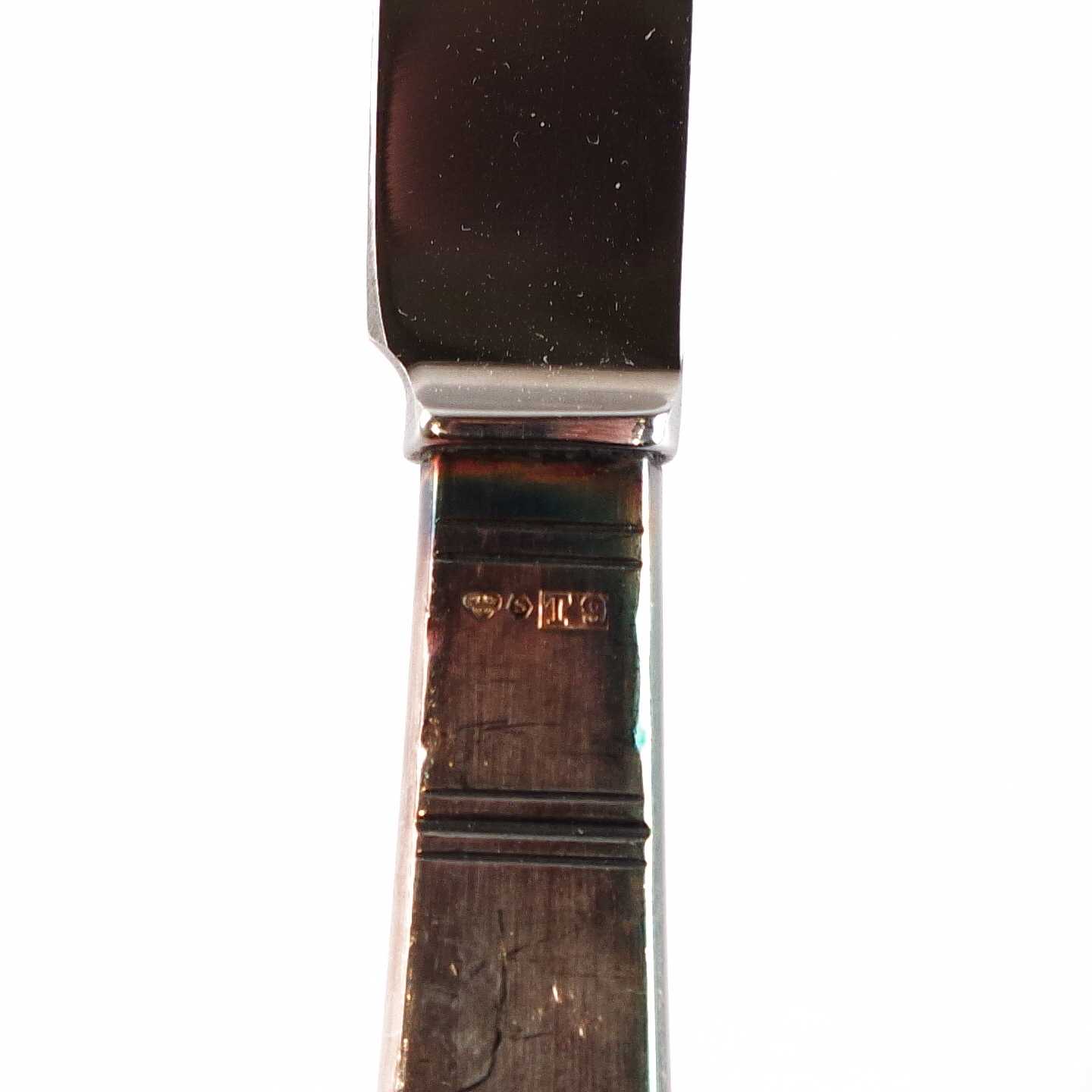 Bilder BESTICKUPPSÄTTNING smörgåsbestick, silver. Rosenholm. 380 gram totalt, knivar är silver/rostfritt. L:13,8cm gafflar, L:16,6cm knivar.