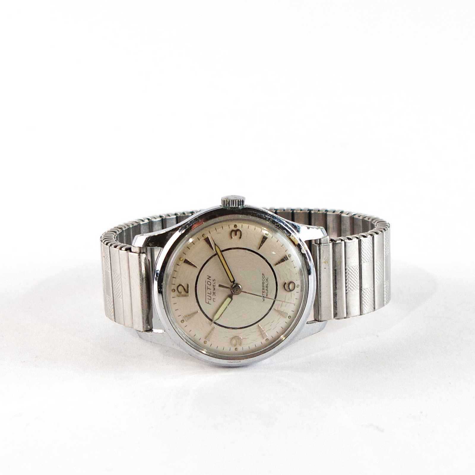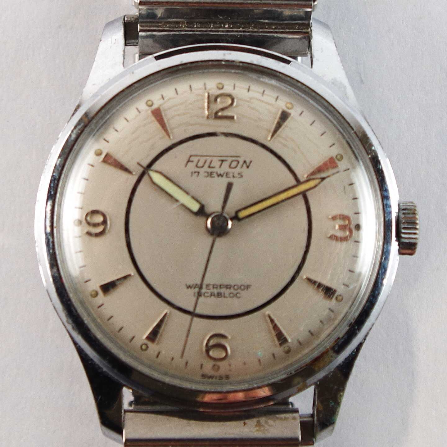 Bilder HERRARMBANDSUR Fulton, 17 Jewels. D:35mm. (bruksslitage, krackeleringar glas)