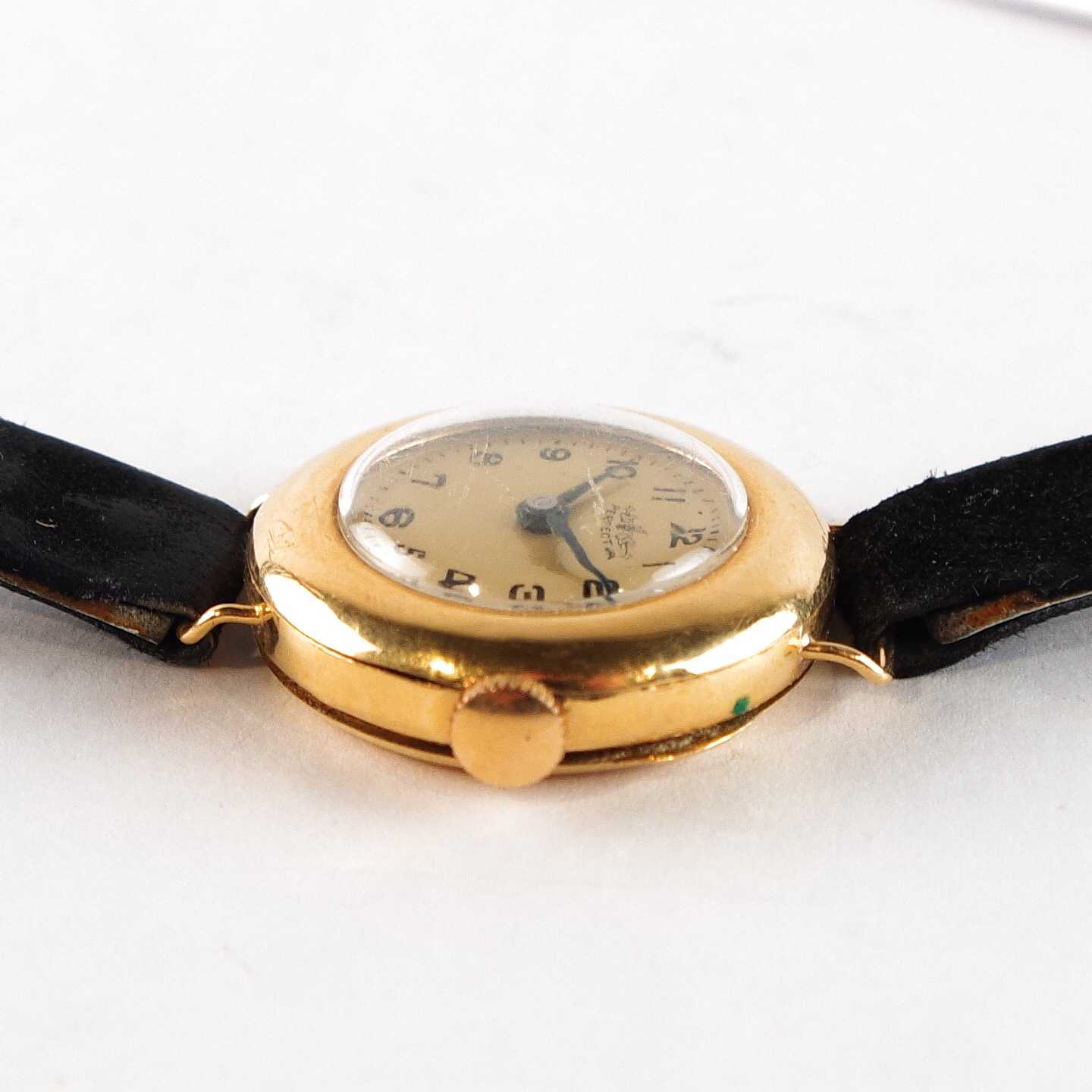 DAMARMBANDSUR Perfecta, guld 18k. D:28mm. Går korta stunder. 16,45 gram totalt.