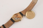 Mönstrad urtavla. Mekaniskt. Armband av svart läder.