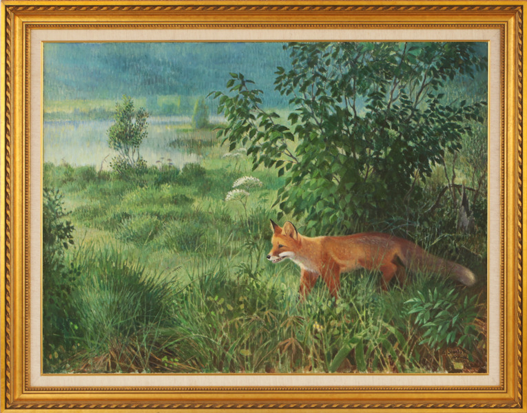 Olja på duk, landskap med räv. Signerad och daterad 77/78.