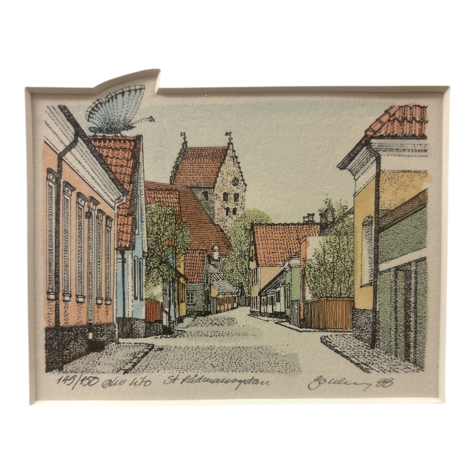 Bo Olsson– “St. Rådmansgatan, Simrishamn” litografi 1985, signerad & numrerad