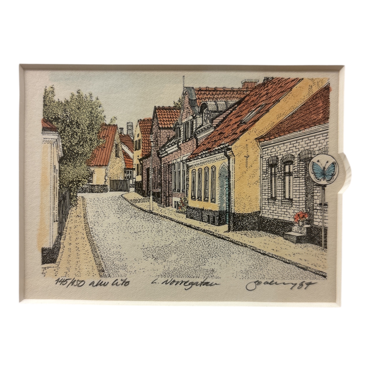 Bilder Bo Olsson – “Lilla Norregatan, Simrishamn” litografi 1988, signerad & numrerad
