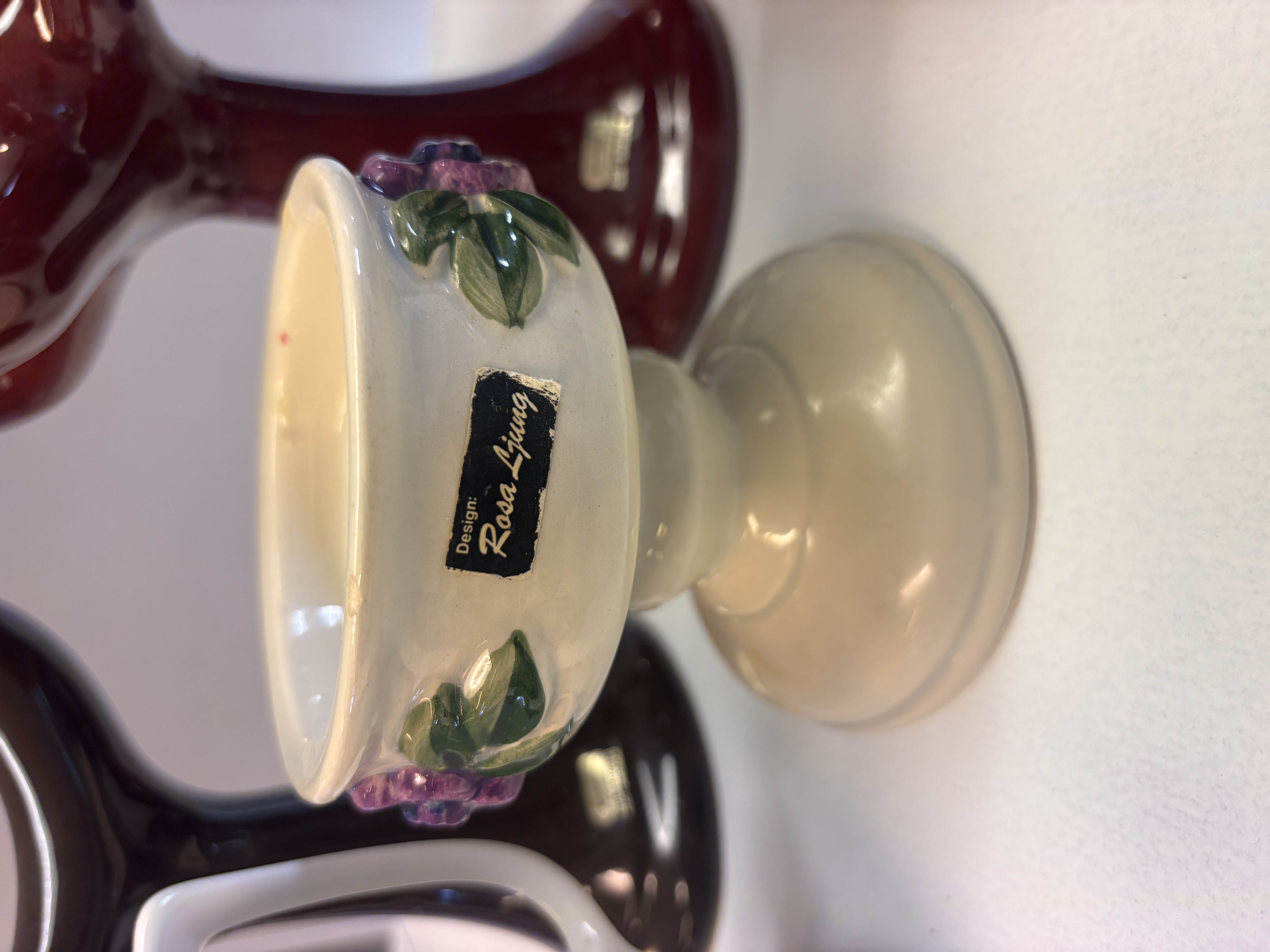 Fat/urna på fot med blommotiv, märkt Elena Long Italy