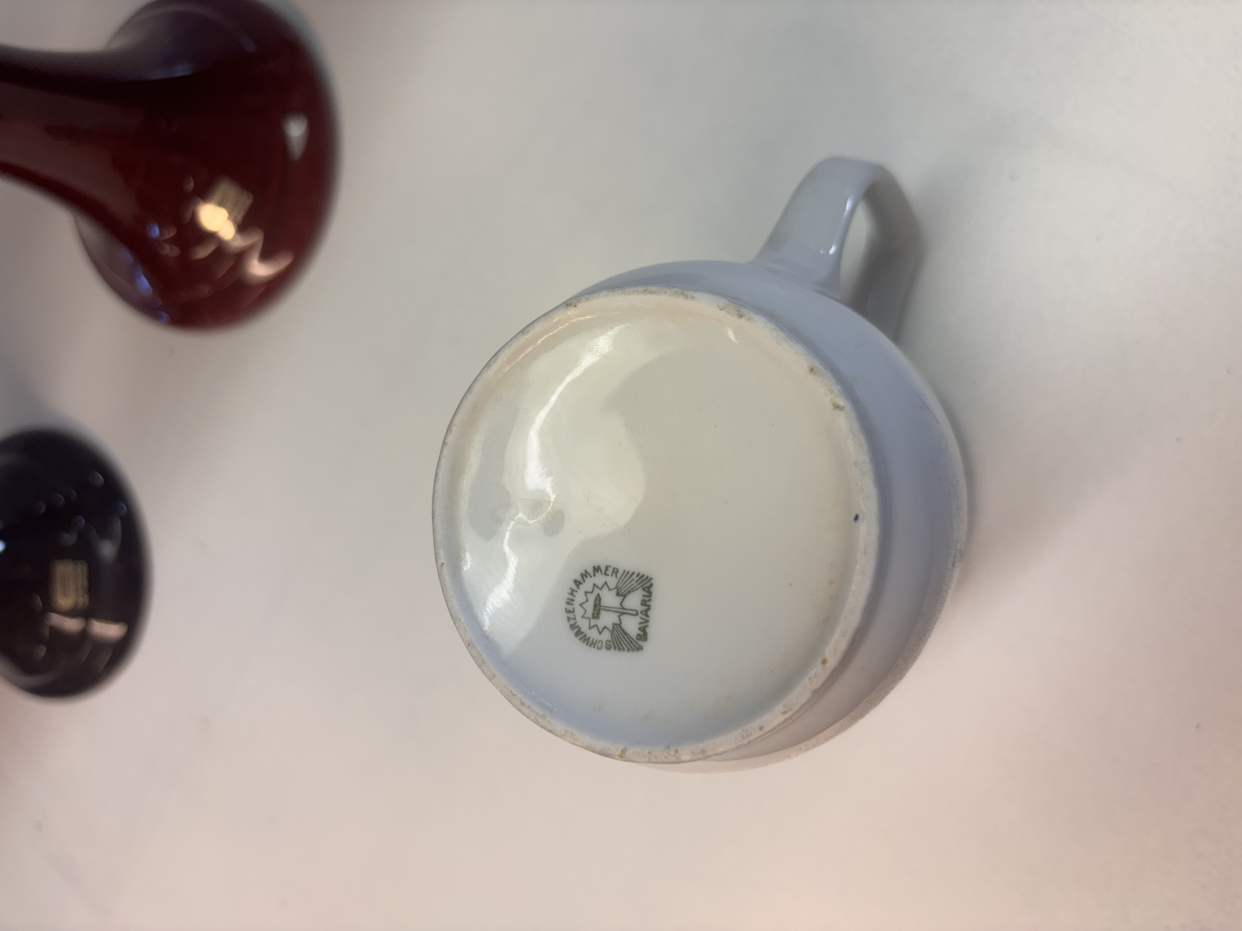 Kanna med vindruvsdekor, märkt Schwarzenhammer Bavaria