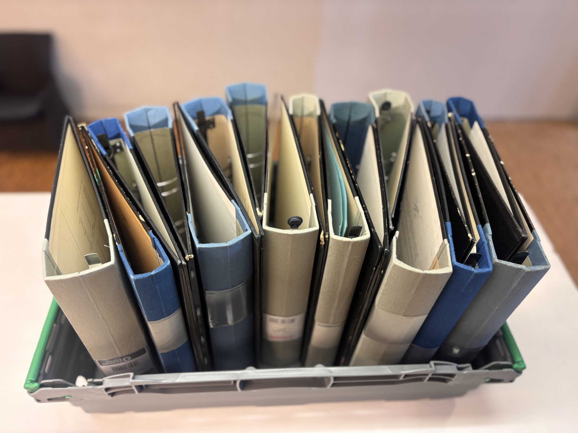 Parti med pärmar i olika färger och storlekar, cirka 12 stycken, levereras i grå plastback.Perfekta för kontor, samlingar eller arkivering. Blandade färger såsom blå, grå och svart.Pärmarna är i begagnat men fullt användbart skick.