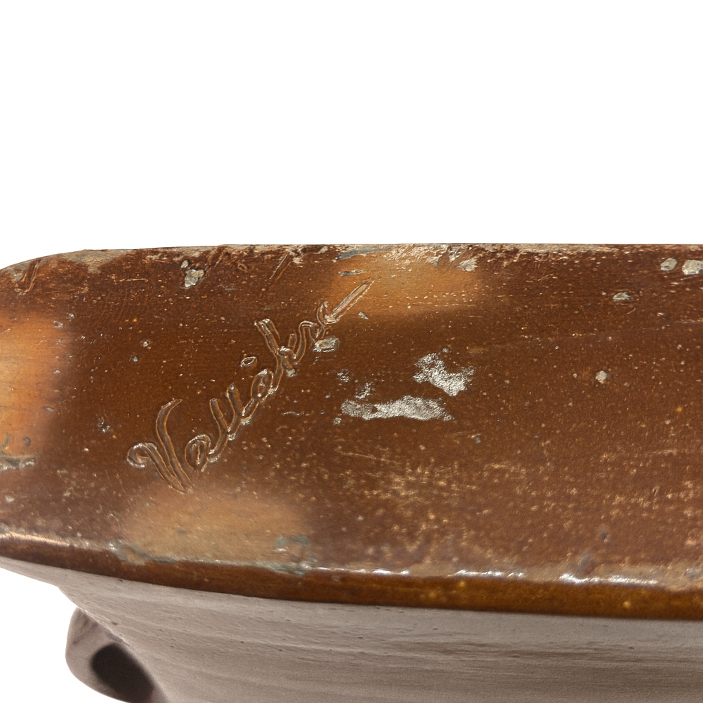Vacker handgjord kruka från Vallåkra Stenkärl, i brunt glaserat stengods med dekorativt mönster längs kanten.Oval form med två handtag. Märkt Vallåkra undertill.En klassisk och tidlös keramikkruka i rustik stil, perfekt för både inomhus- och utomhusbruk.