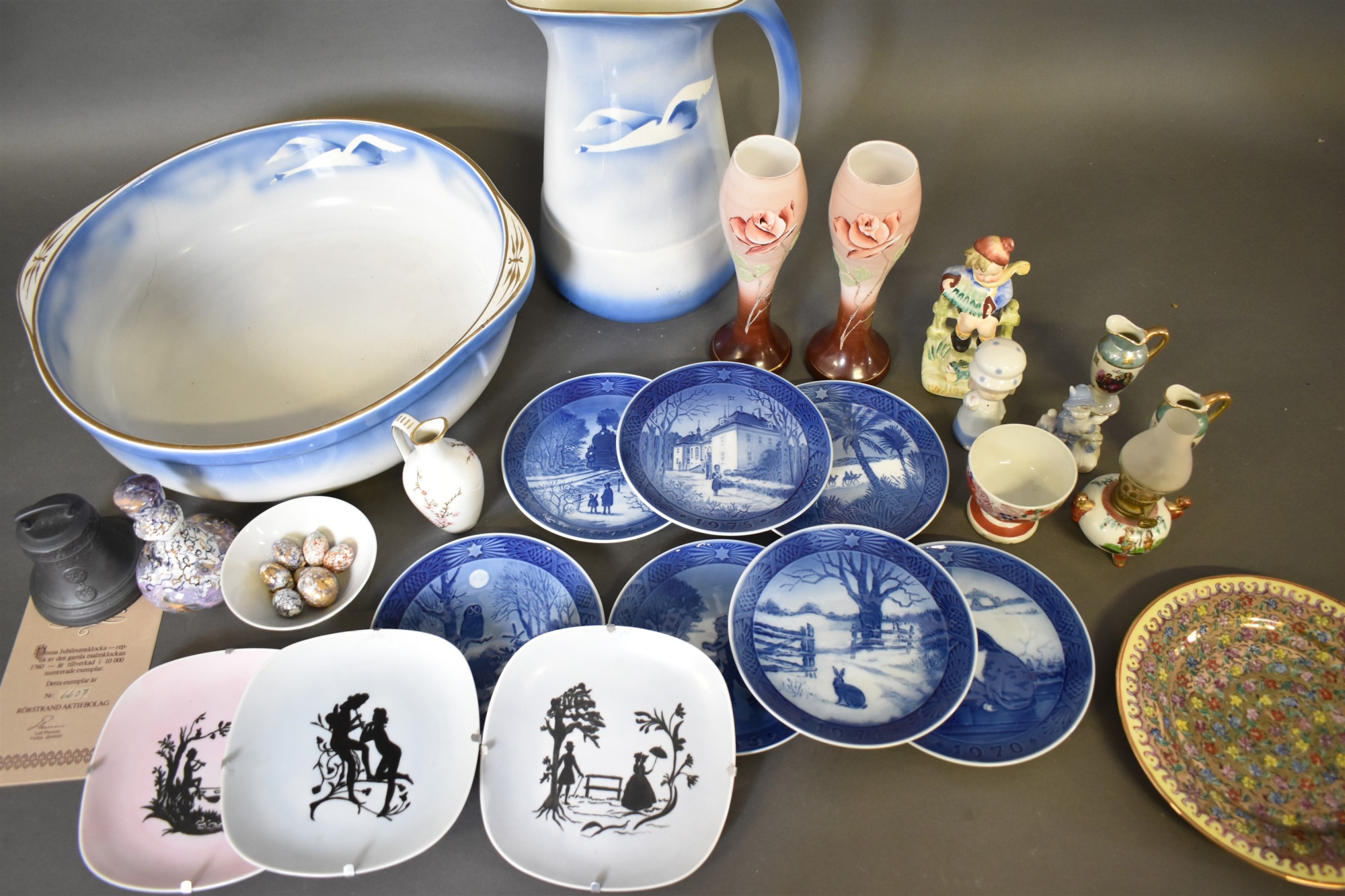 Auktioner Keramik & Porslin Parti porslin, bl.a tvättkanna & tvättfat, flussglasvaser 1 par, högsta 32 cm, tvättfatet har en spricka