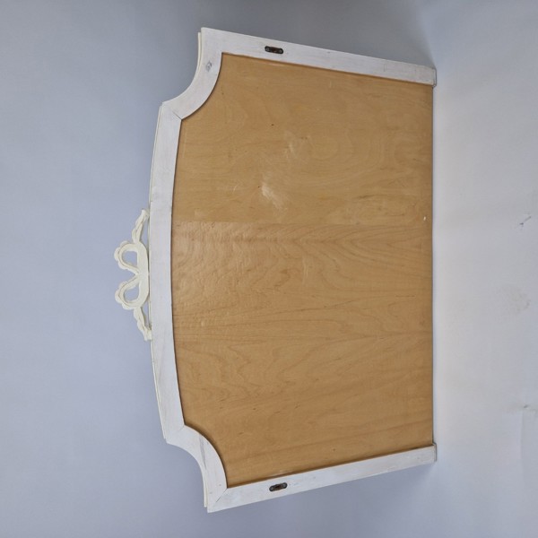 S O Larsson Stilmöbler, antikvitmålad, handsnidade detaljer, med stoppning, oklädd, med beslag för väggupphängning.