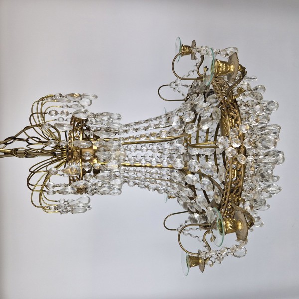 6-armad, med prismor och 7 ljuspunkter, ljusmanschetter i klart glas.