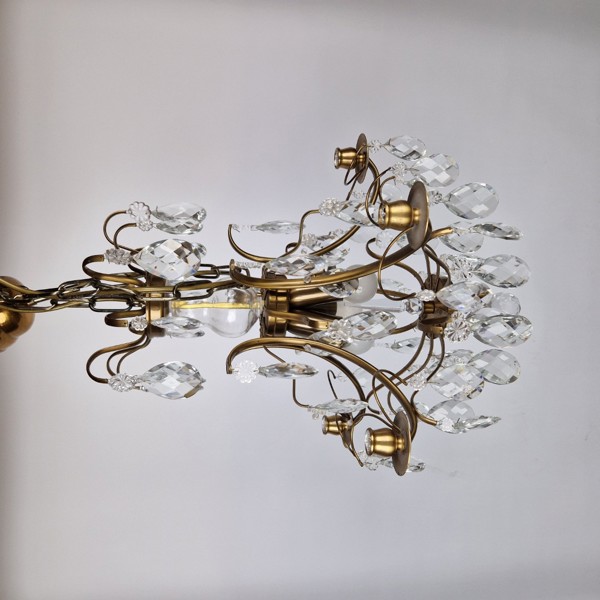 5-armad, mässingsstomme med prismor, 3 ljuspunkter, 1900-talets mitt.