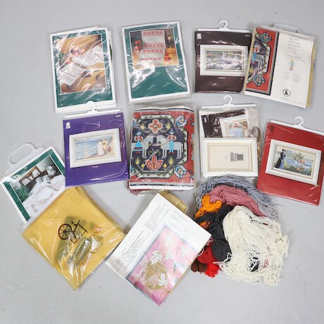 utrustning för flamskvävnad + obegagnade handarbeten