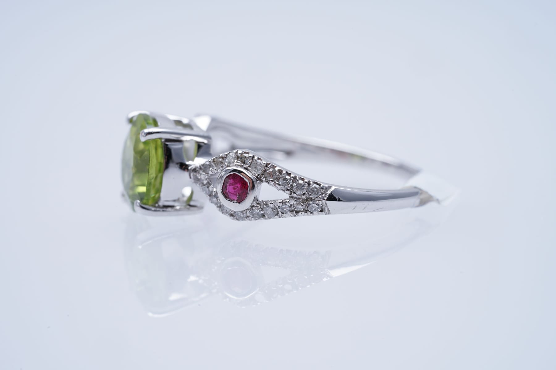 Bilder RING white GOLD 375 / 1000 PERIDOTS RUBIES ( 1,58 ) DIAMONDS ( 0,20 ), 10696