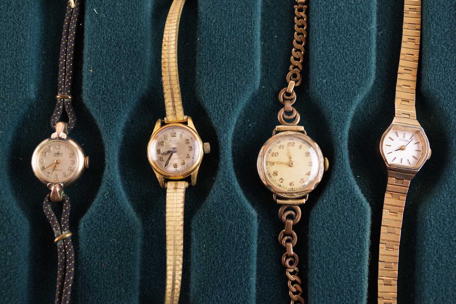 Bilder DAMARMBANDSUR 8st med etui. Bl.a. Citizen. Blandat skick.