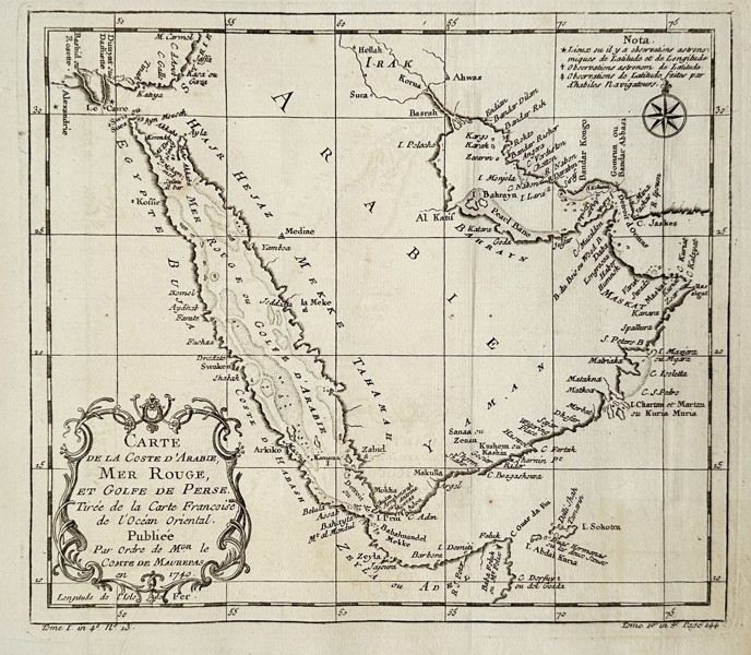 Bilder Jacques-Nicolas Bellin (1703–1772) – Map of The Coast of Arabia, Red Sea, and Persian Gulf – Engraving (circa 1750)