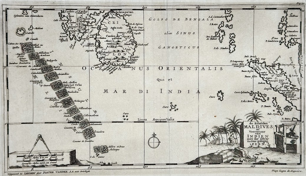 Bilder Pieter van der Aa (1659–1733) – Map of the Island of Ceylon, the Maldives and Vicinity (Sri Lanka) – Engraving (Circa 1707)