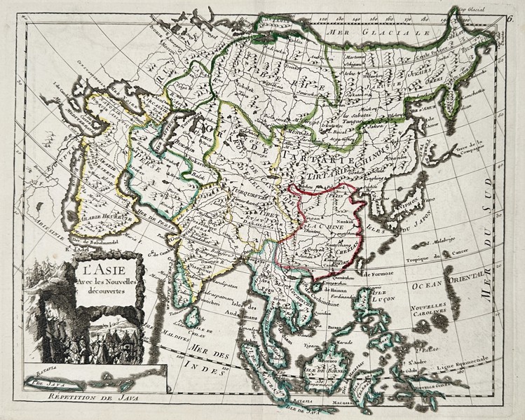 Bilder Georges-Louis Le Rouge (c. 1712–c. 1790) – Map of Asia according to New Discoveries – Hand-coloured engraving (Circa 1748)