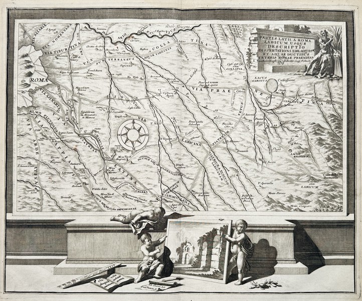 Bilder Jan Goeree (1670–1731) – Map of Part of Latium near Rome, after Ortelius, with Allegorical Figures (Italy) – Engraving (Circa 1694-1699)