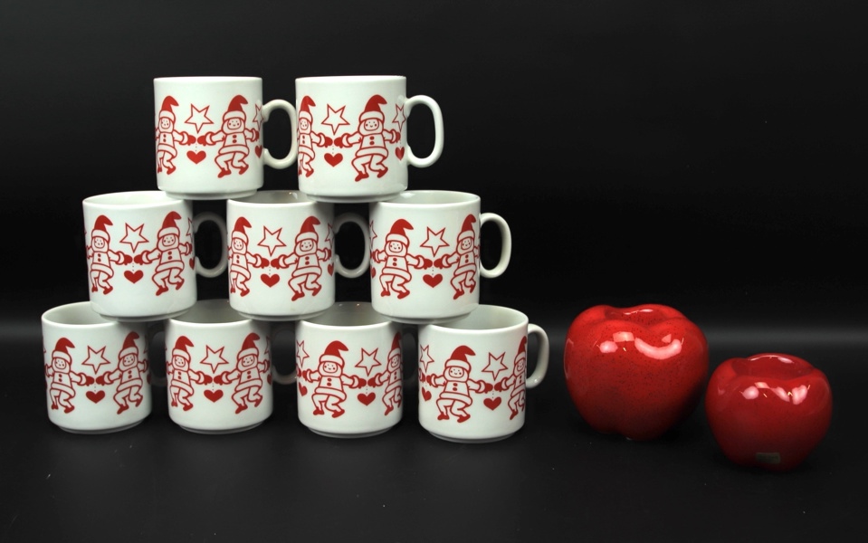 Bilder Muggar och ljusstakar, 11 delar, keramik, bl. a Rolf Berg.