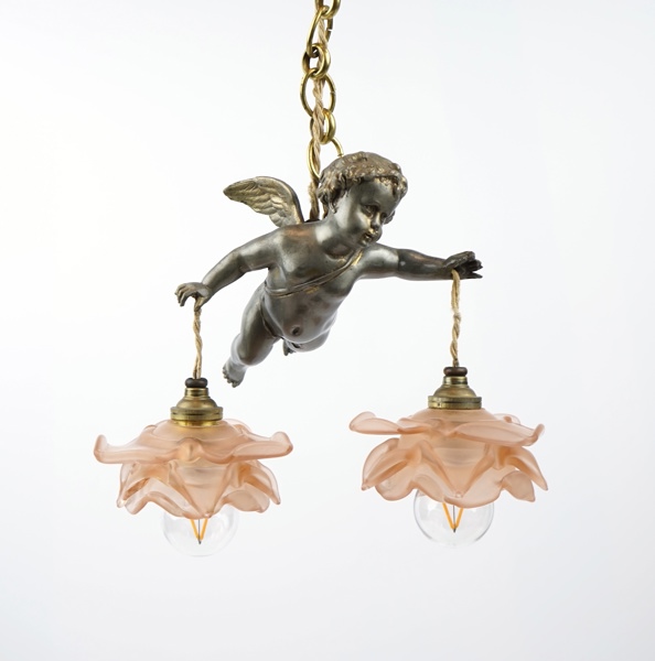 Bilder Taklampa, metall/glas, 1900-talets första del.