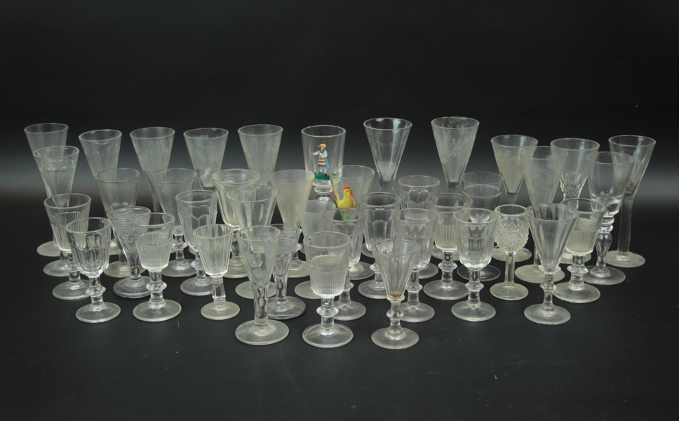 Snapsglas, ett parti, glas/pressglas, 1800/1900-tal.