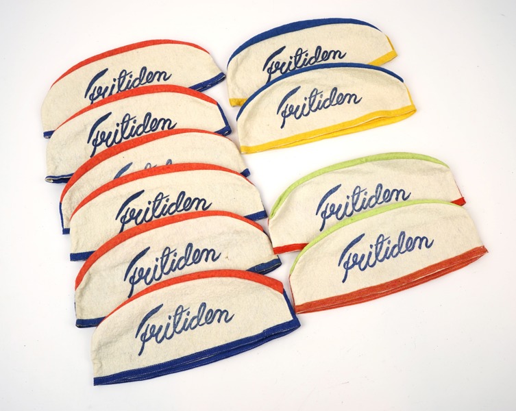 Barnmössor, 10 st, textil, från utställningen ''Fritiden'', 1936, Ystad.