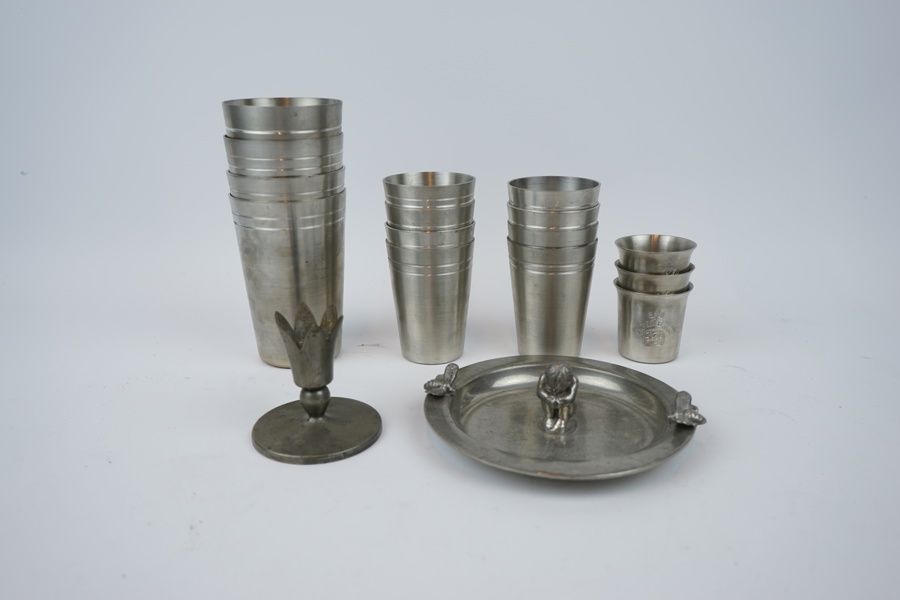 Bilder Tenn, ett parti, bl.a bägare, Ystad.