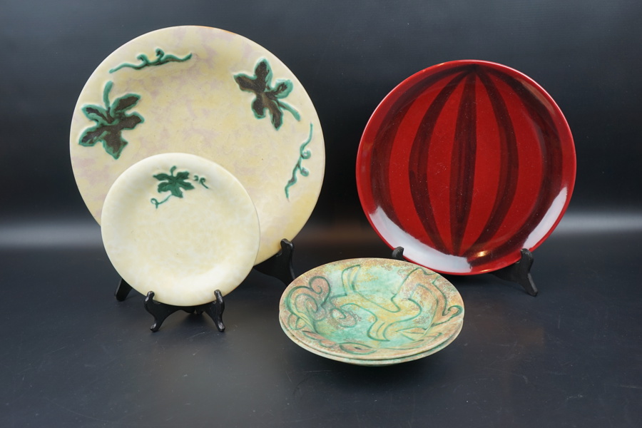 Bilder Fat och frukttallrikar, 5 delar, keramik, bl.a Allan Eberling och Hjördis Oldfors.