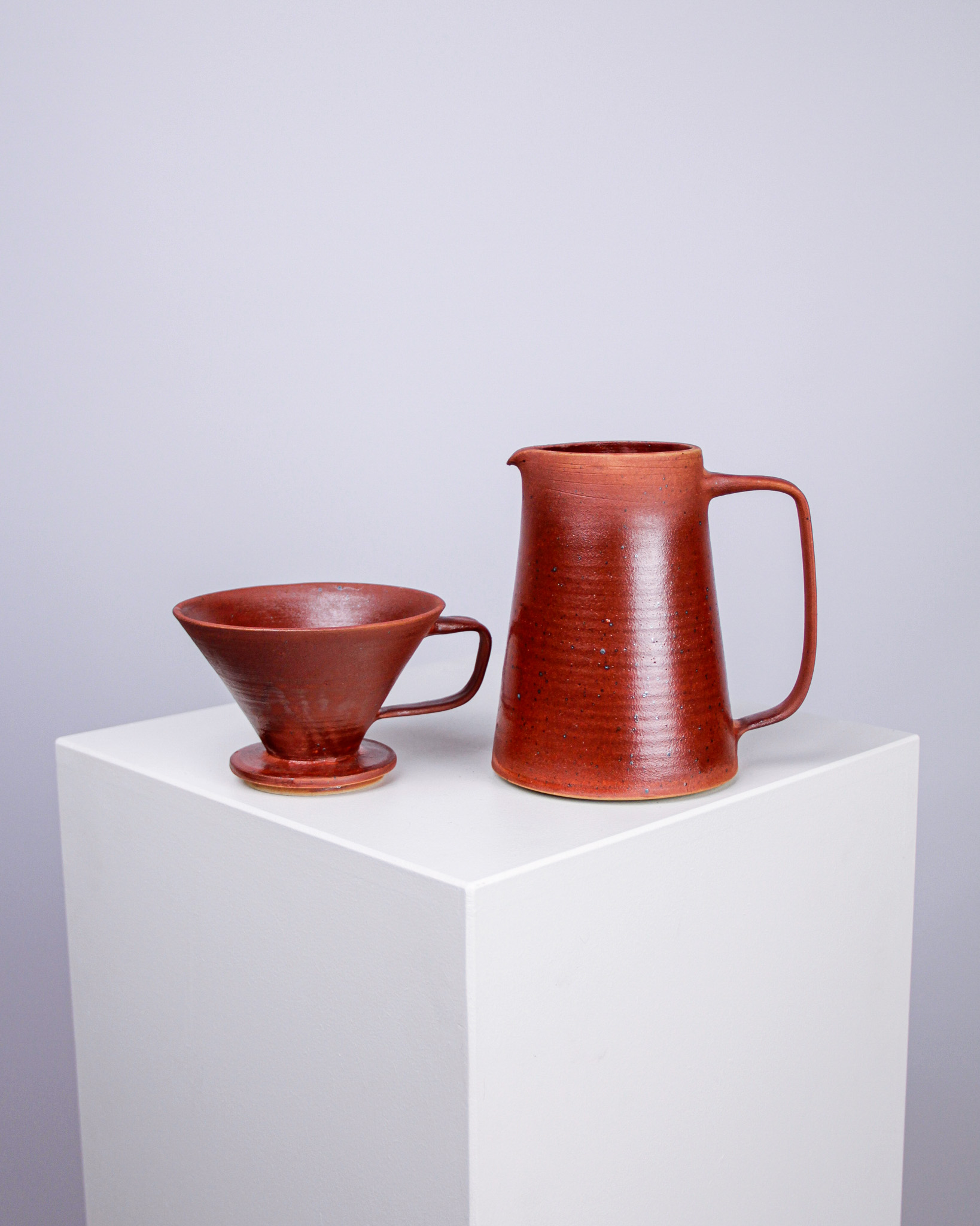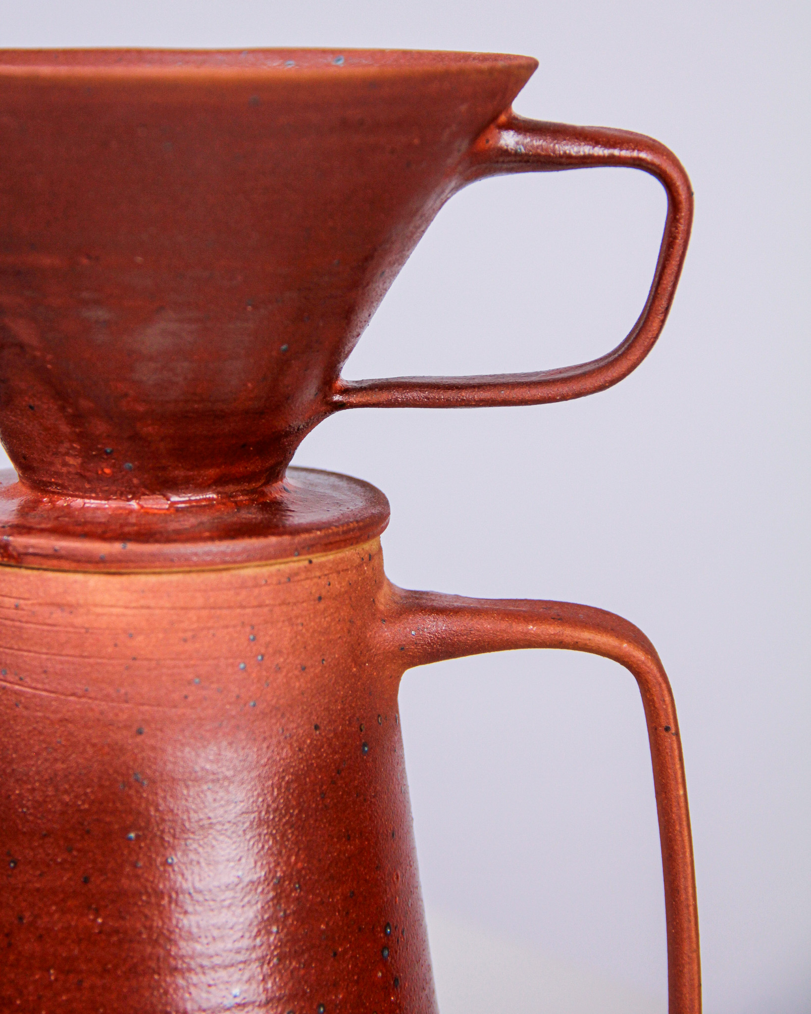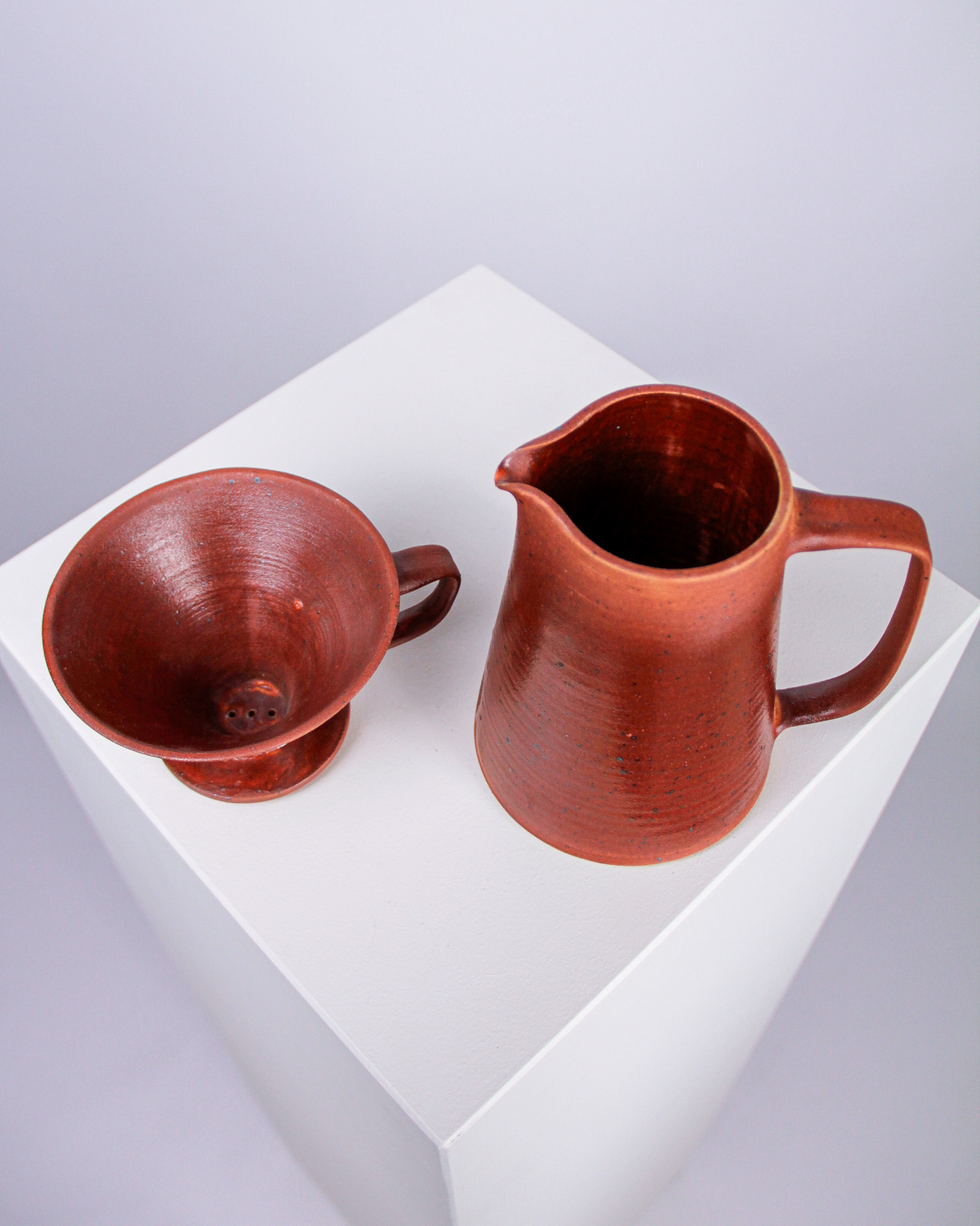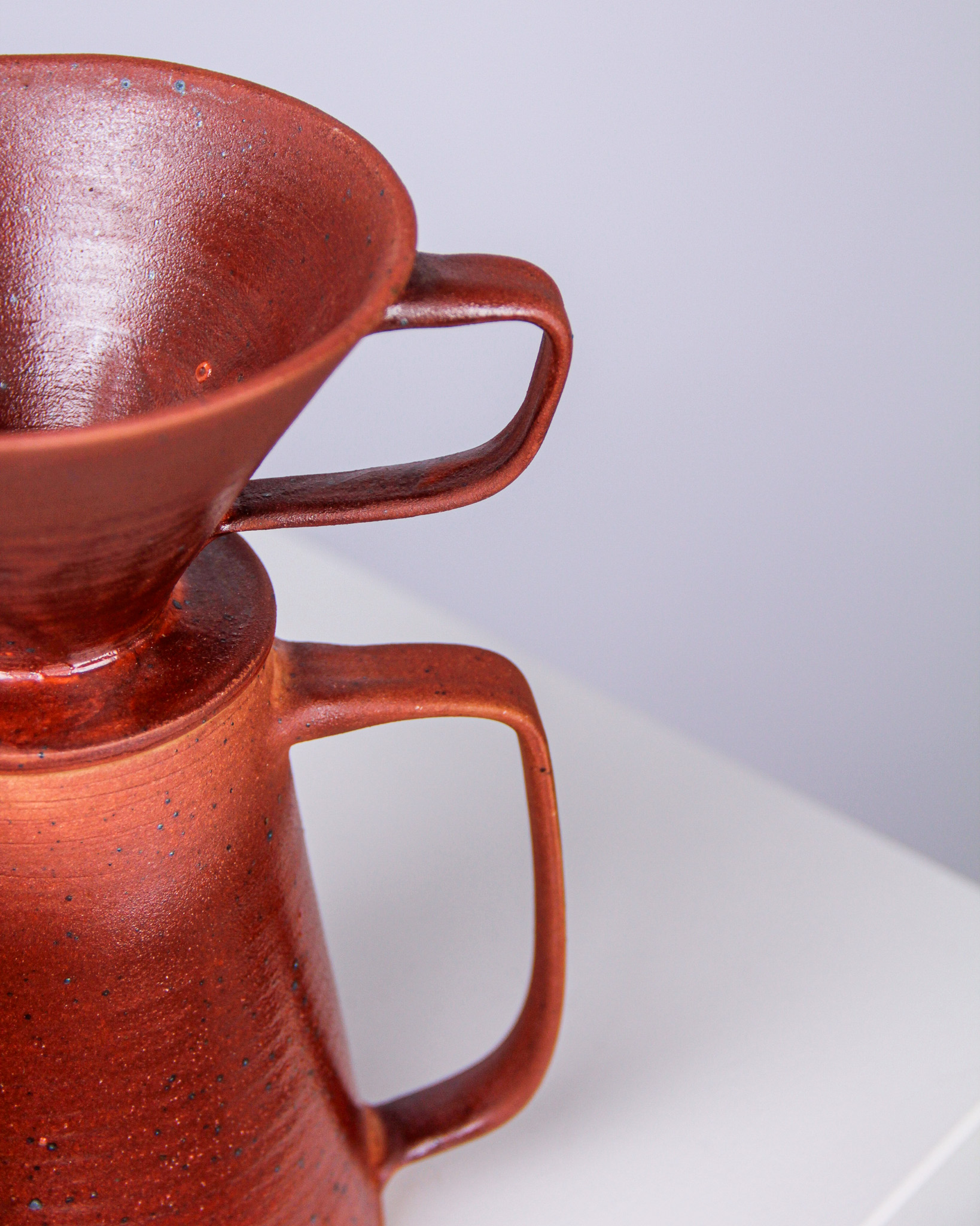 Kaffebryggare, Nike Kero, reduktionsbränt och Shino-glaserat stengods, signerad och märkt (keramiktema)