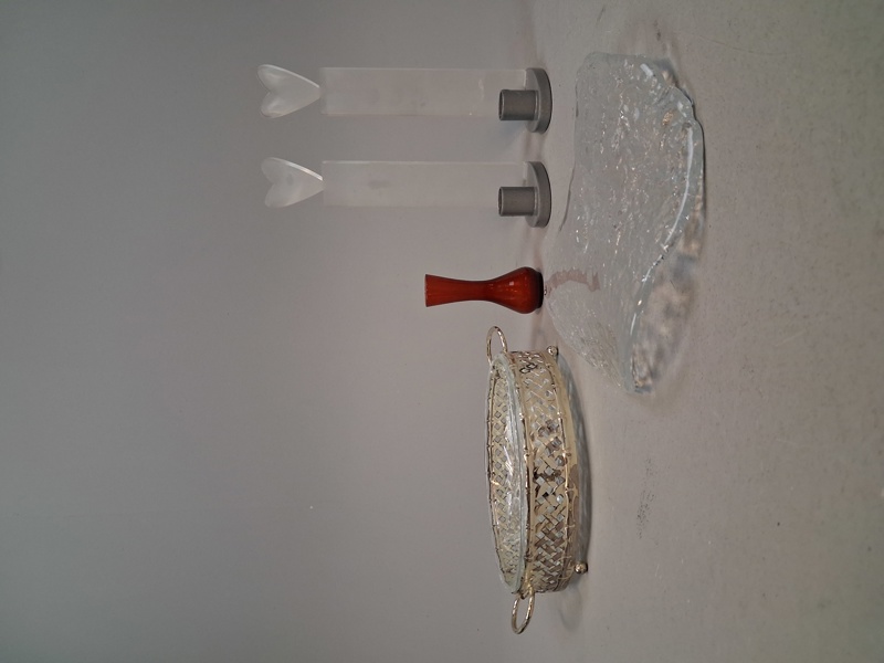 Bilder Diverse. Bl.a Pukeberg & serveringsfat i glas & metall.
