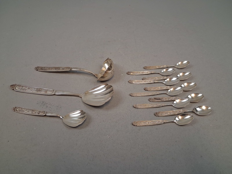 Bilder GUNNAR NYLUND. Bestickdelar, "Romantik", MEMA, 13 delar, nysilver.