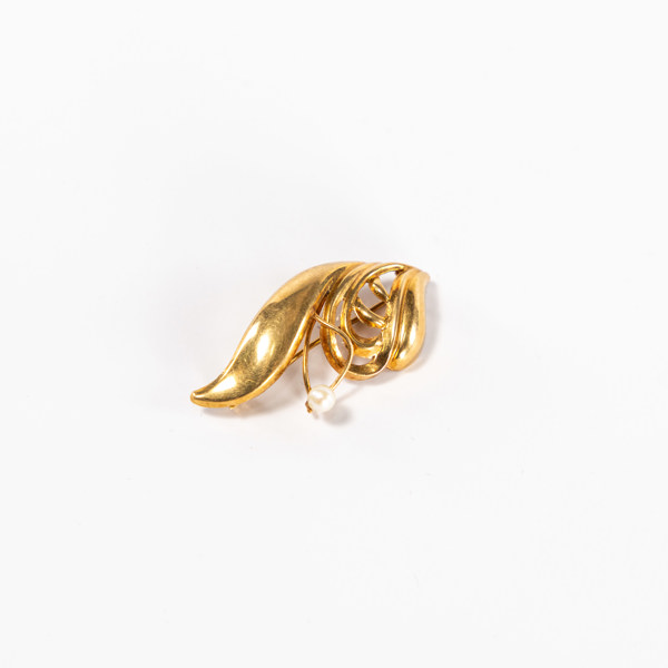 Brosch med pärla, 18k guld, vikt 3,1 gram