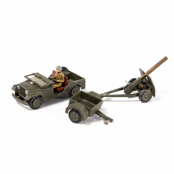 Jeep med släp och kanon, Tekno, Danmark, bilens längd 8 cm