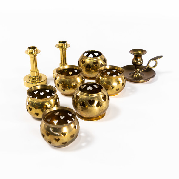 Ljusstakar, ljuslyktor, 9 st, mässing, högsta 10 cm