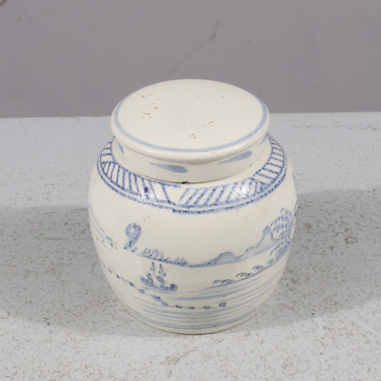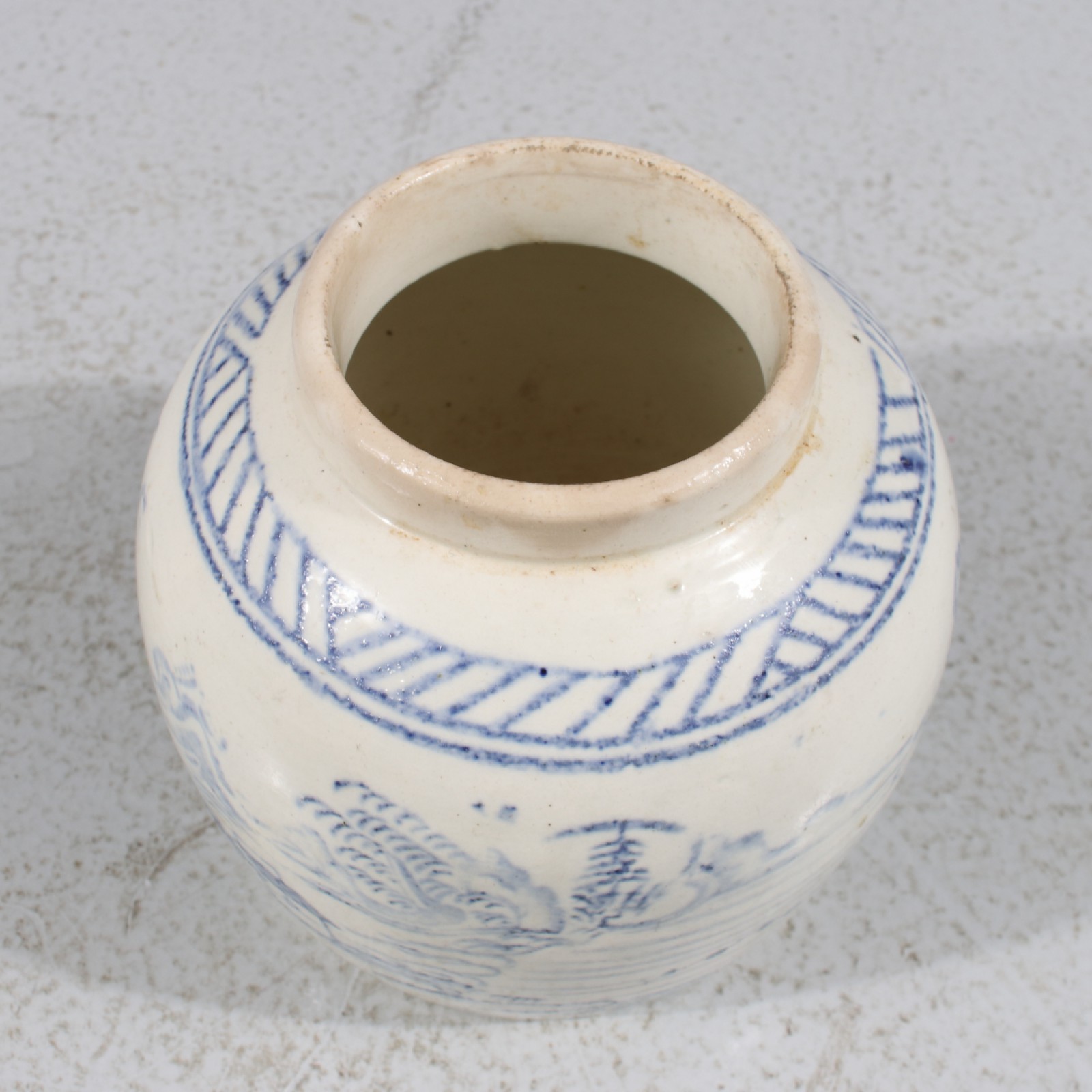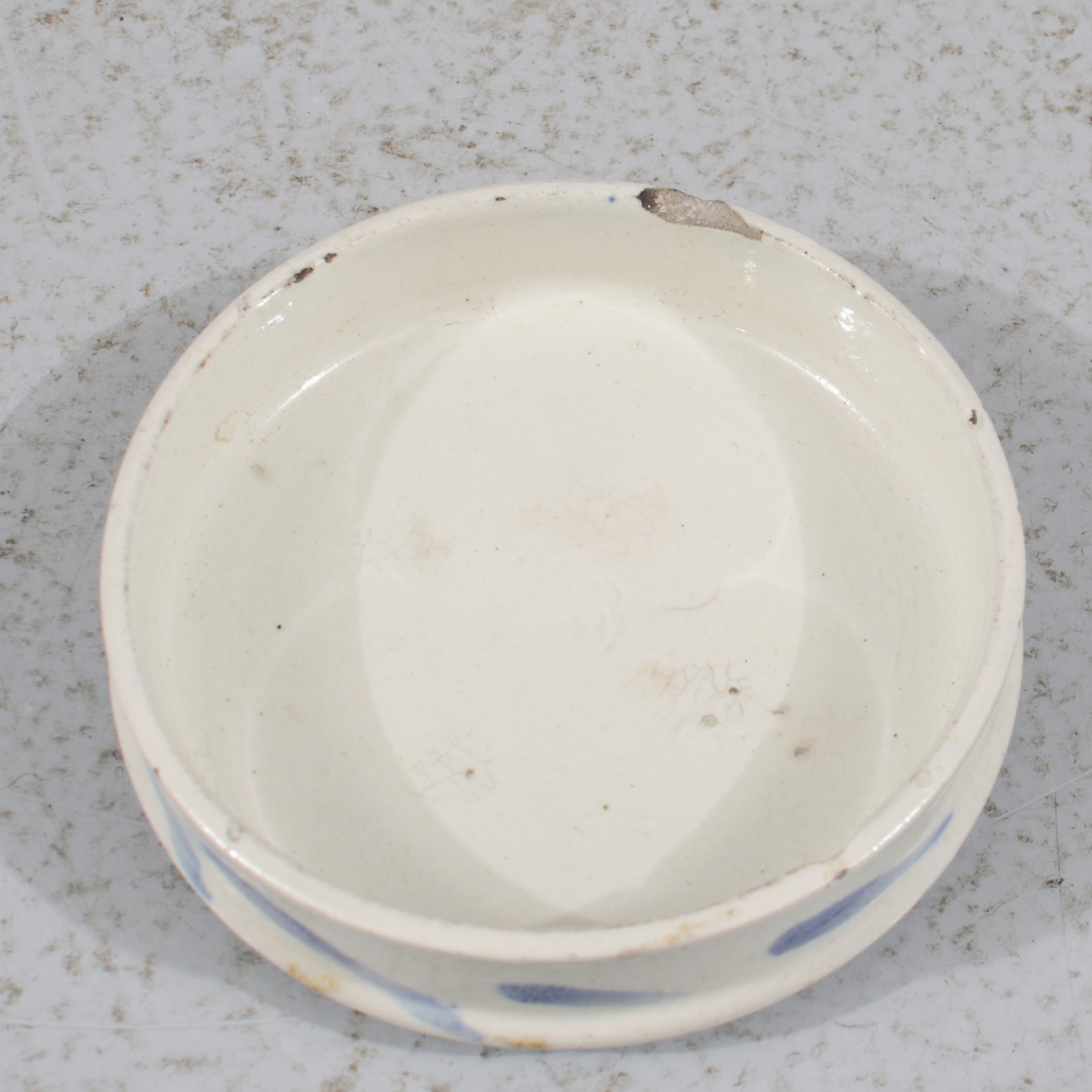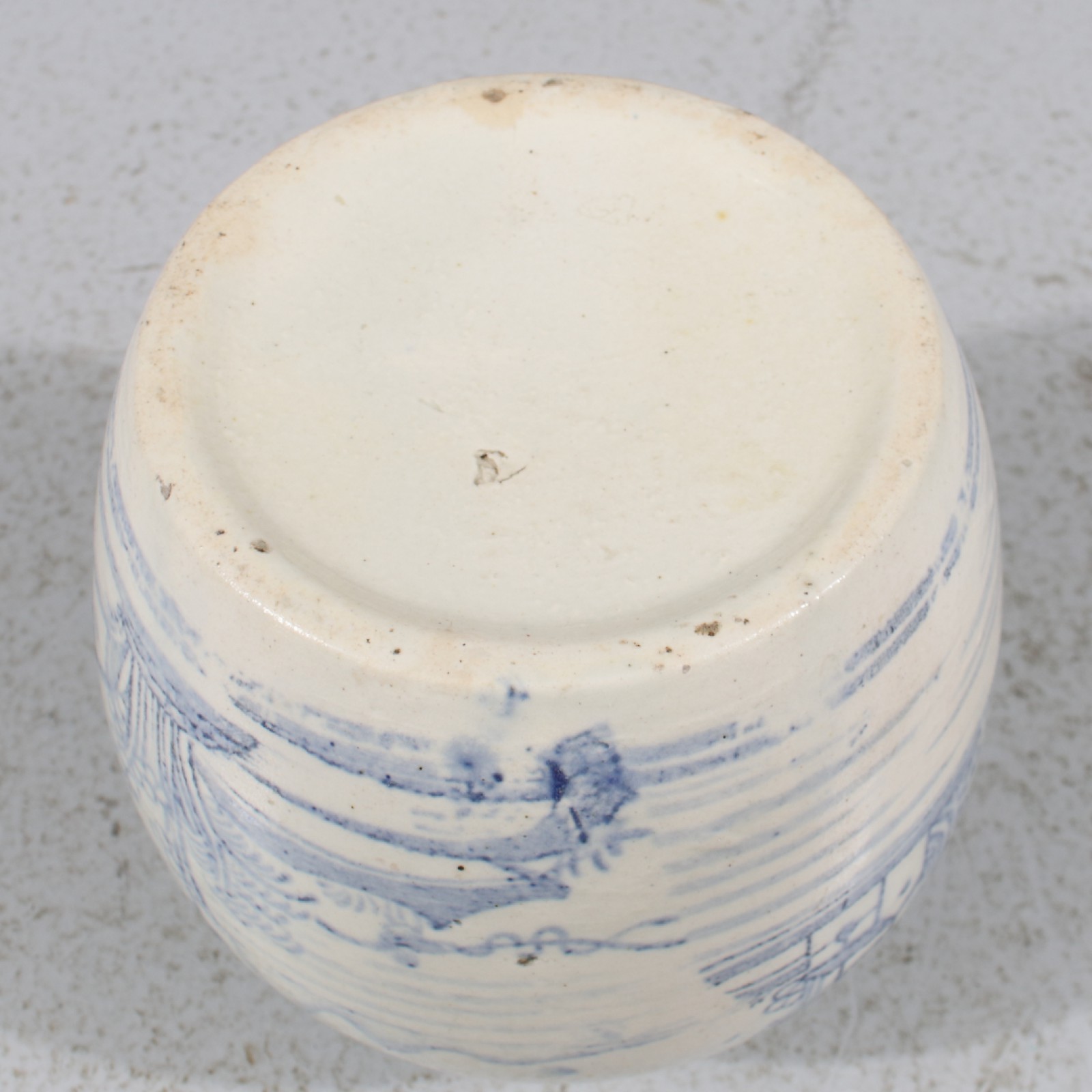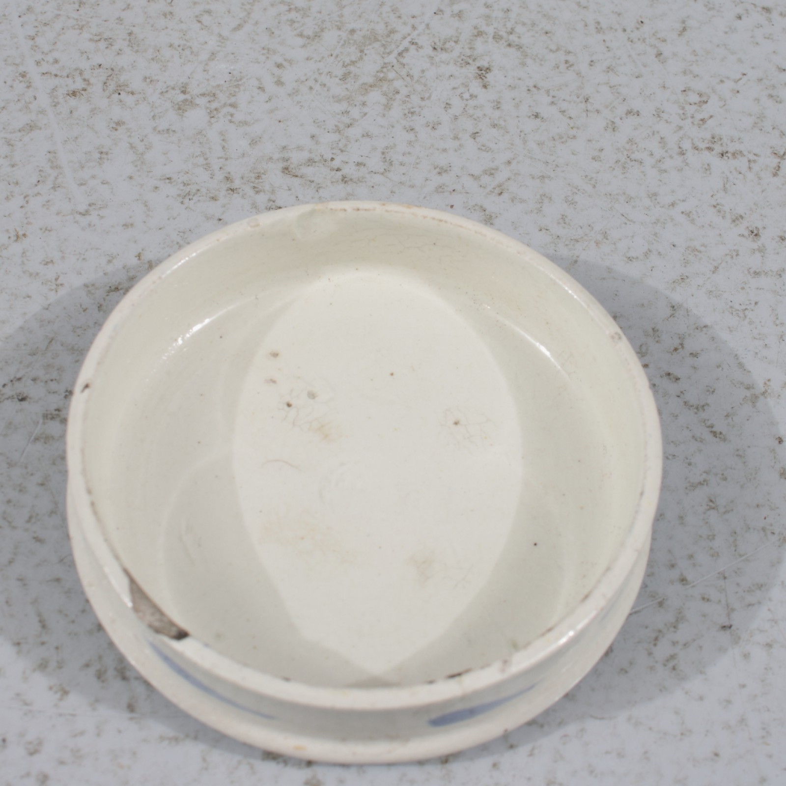 Stengods, lock med nagg/avslag på undre kant (se bild), höjd 12,5 cm. (vån3)