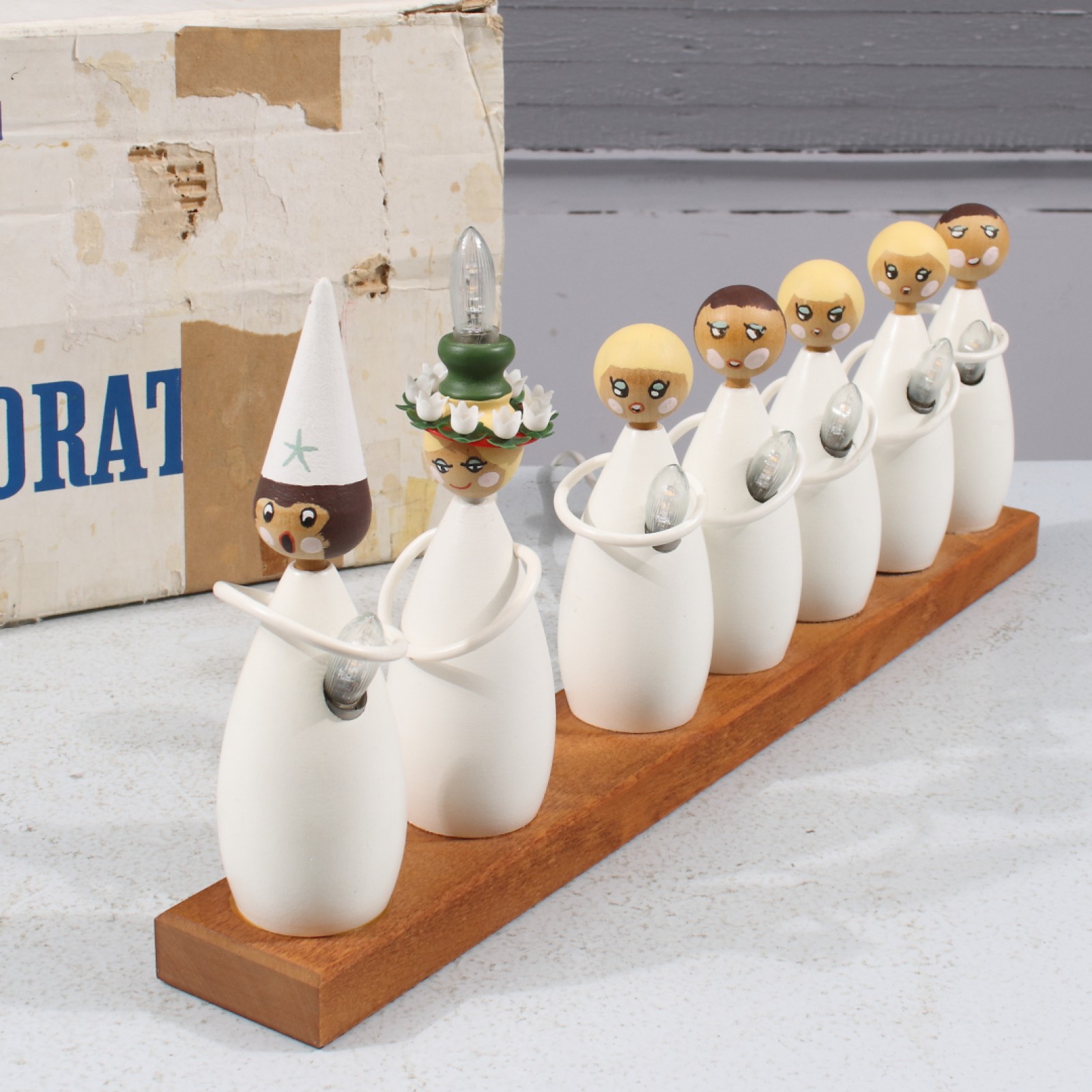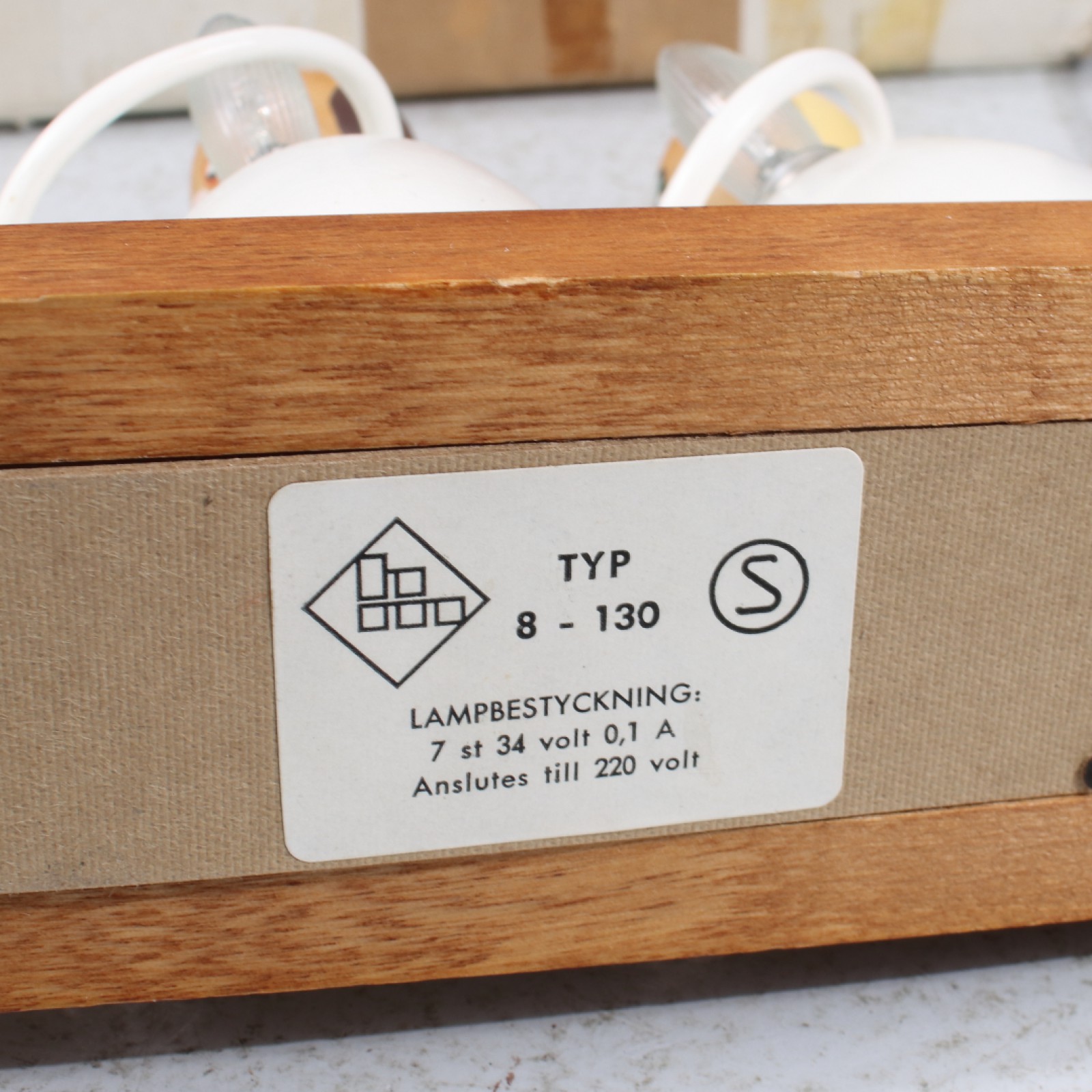 Trä, 1970-tal, lyser vid test, originalkartong medföljer, höjd 18 cm, bredd 48 cm. (vån3)