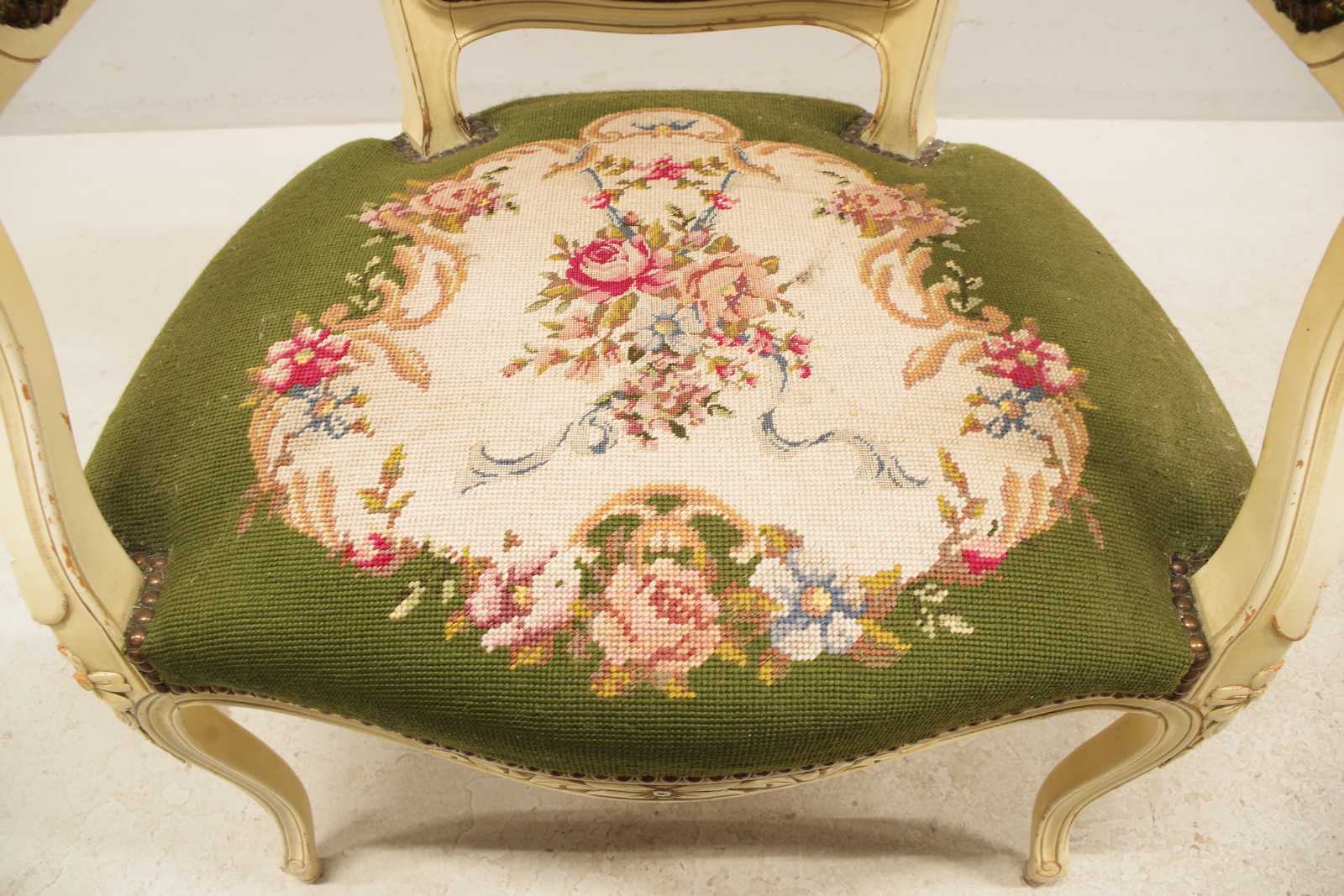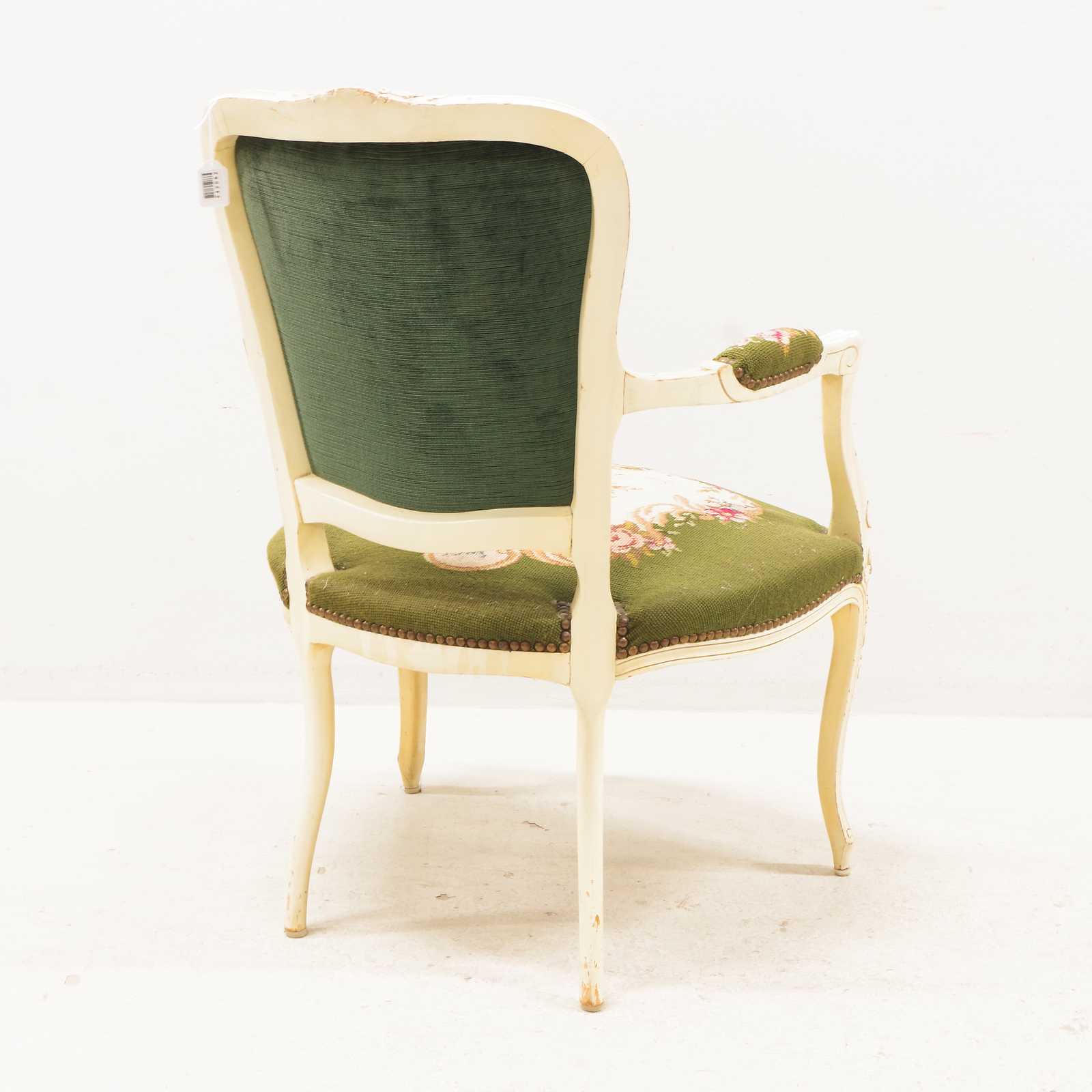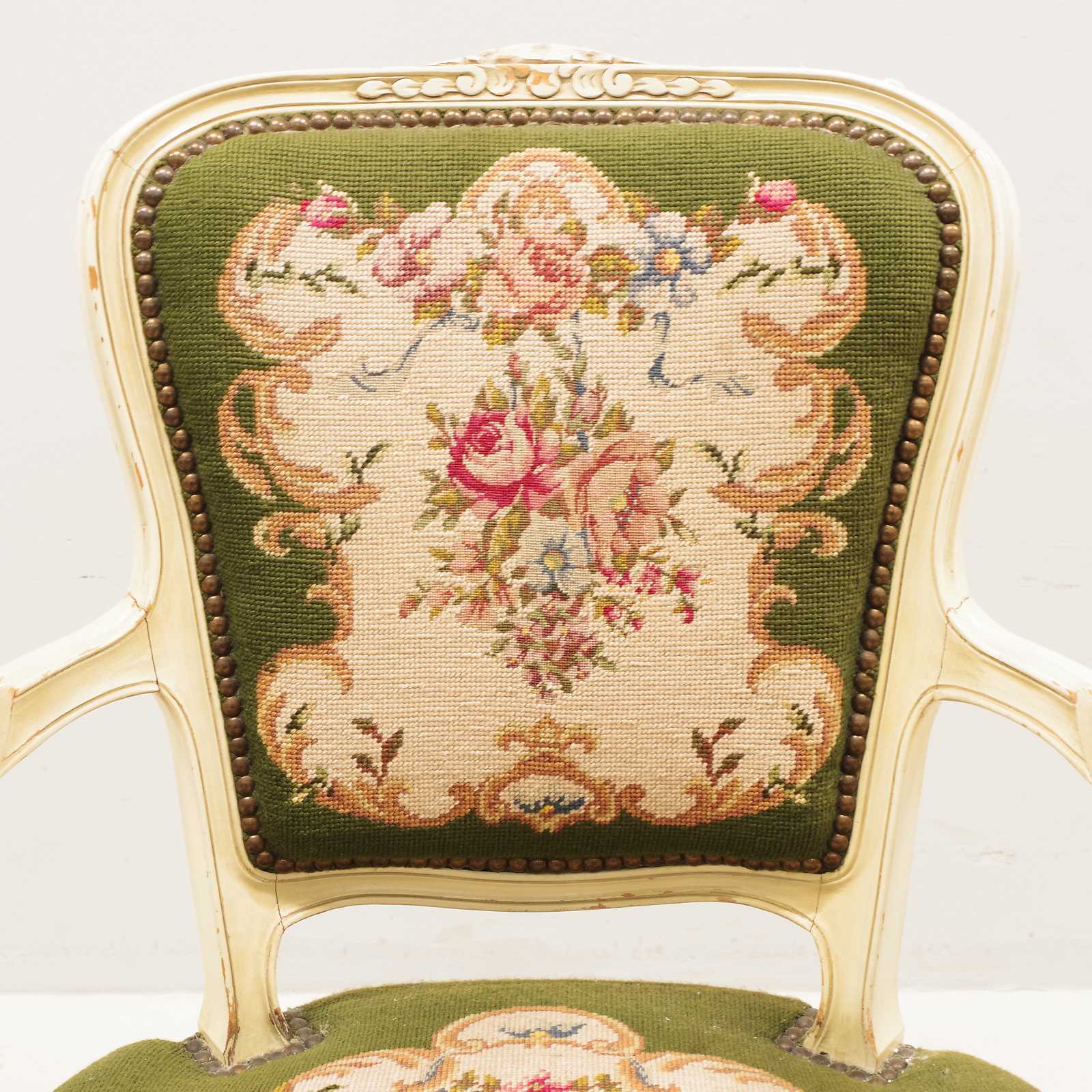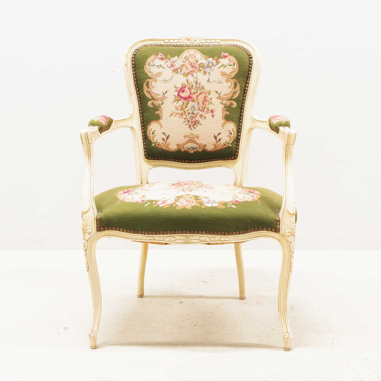 Bilder KARMSTOL, rokokostil, broderad klädsel, 1900-tal, sitthöjd: 42cm (bruksslitage)
