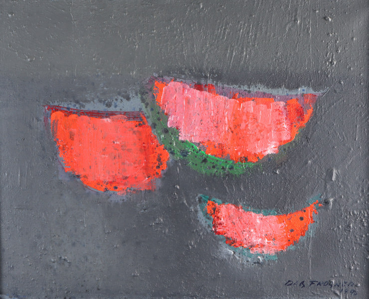 Dag Frogner(1929-2015): Komposisjon 1996, olje på lerret. 40x50 cm.