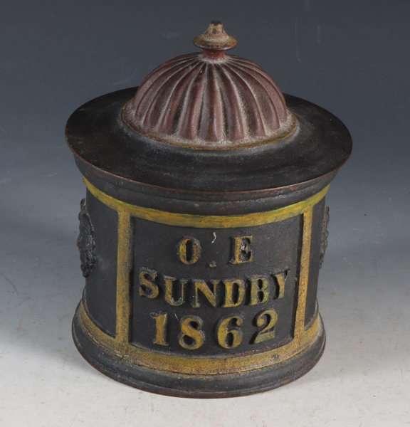 Tobaksboks i jern, O. E. Sundby 1862. H: 22 cm.