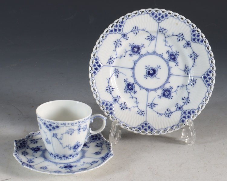 Mokkaservise til 12 personer. Kopp, skål og asjett. Musselmalt, helblonde. Første sortering, Kngl. Dansk. D: asjett 15 cm.