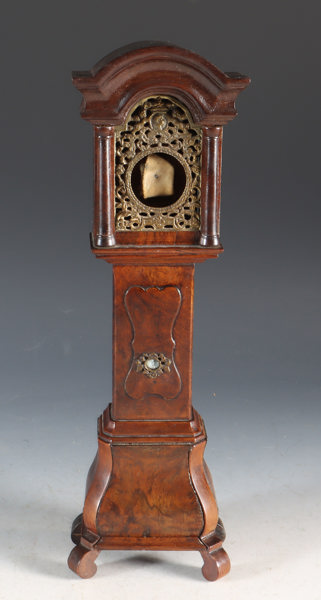 Lommeurstativ i form av gulvur, biedermeier midten av 1800 tallet. H: 43 cm.