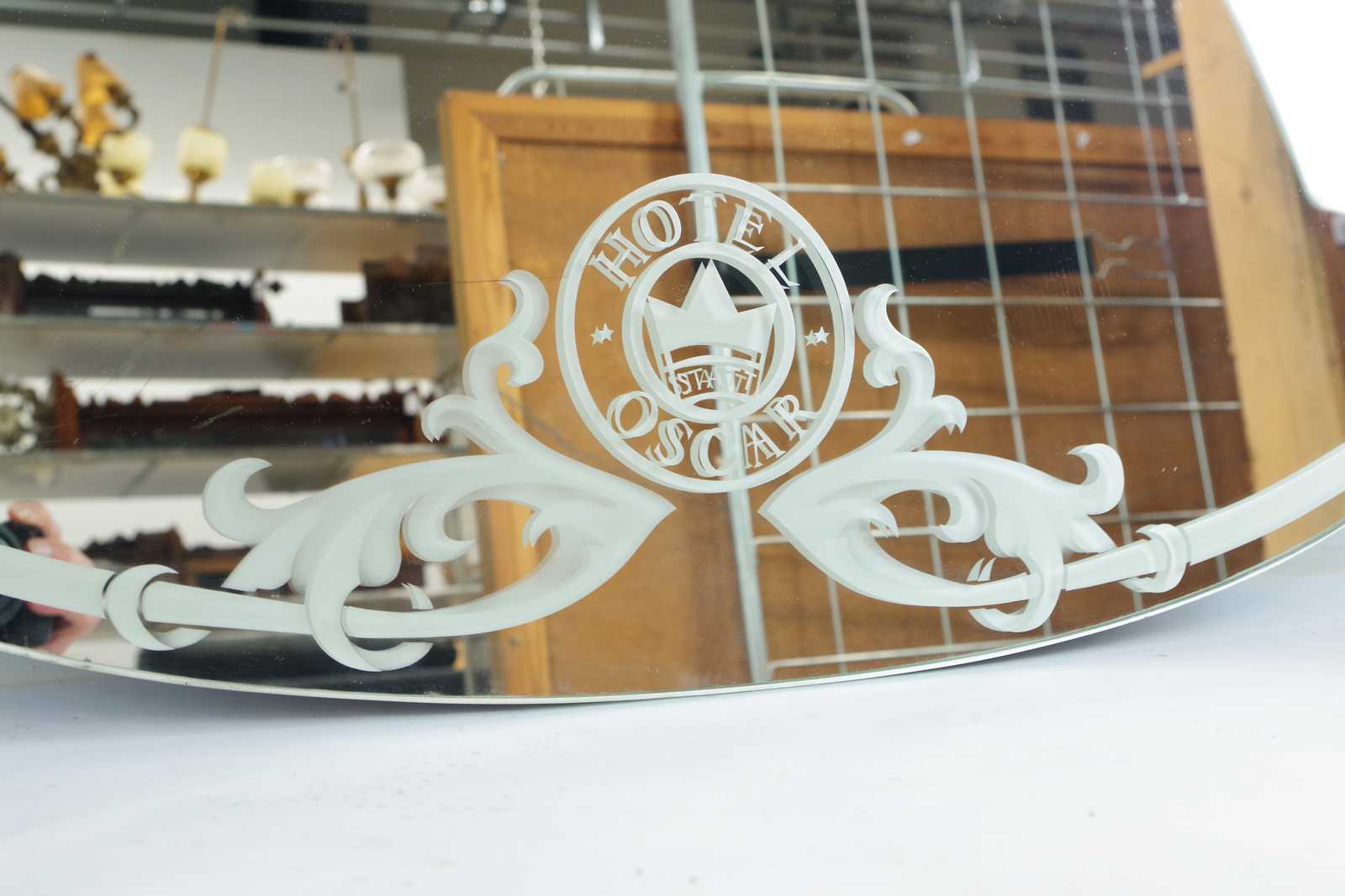 Bilder SPEGEL Hotel Oscar Statt, Arvika, frostat glas. 111x82cm (upphängning saknas)
