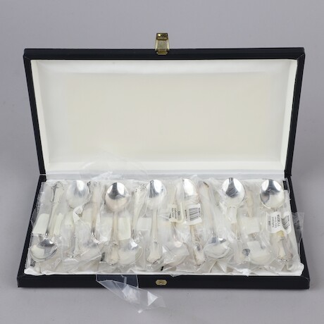 Teskedar silver 12st "Eva", obegagnade, tot vikt med plast = 268g