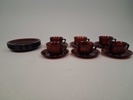 Kaffefat & assietter har bestick repor.